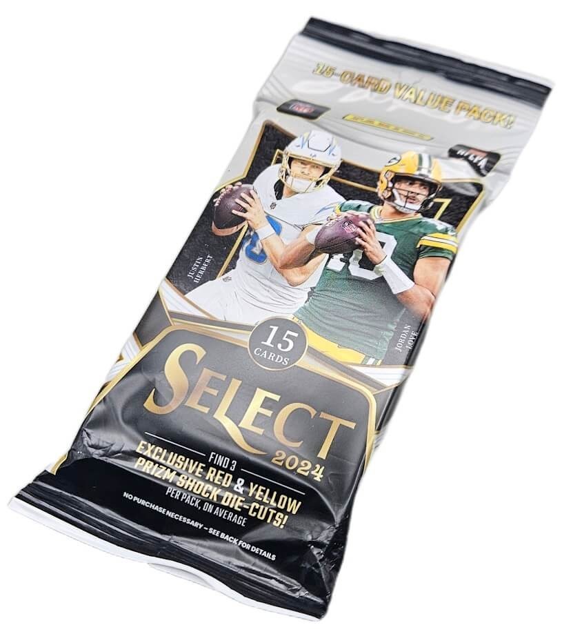2024 Panini Select Football Sealed Fat Pack 2024 Panini Select Football Factory Sealed Jumbo Value Pack IN STOCK 15 Cards Per Pack Find 3 Exclusive Red & Yellow Prizm Shock Die Cuts Per Pack!