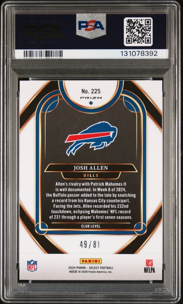 2024 Panini Select JOSH ALLEN Dragon Scale Prizm /81 #225 Club Level PSA 9 Bills