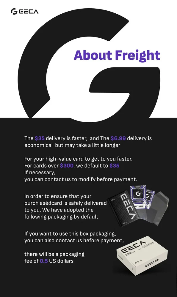Really solid experience all around. I purchased multiple cards from GECA and everything arrived exactly as described. The packaging was done extremely well — plenty of protection and secured properly so nothing moved during shipping. All the corners, edges, and surfaces matched the photos with no surprises. On top of that, the value was excellent for what I received. Shipping was quick and communication was easy. You can tell GECA understands the hobby and takes care of their inventory. Would de
