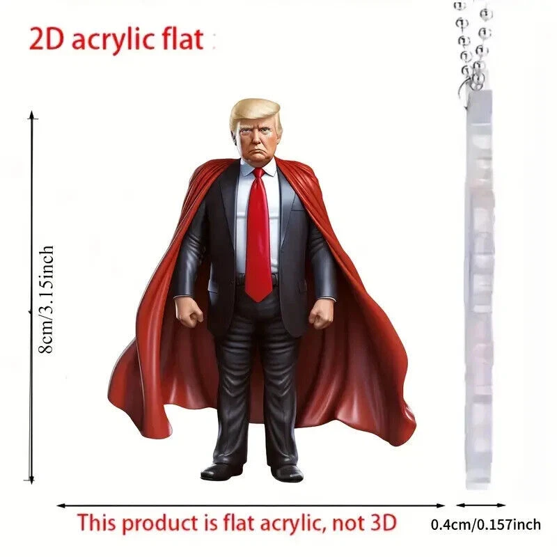 2024 Trump Presidential Keychain Pendant - Funny USA Election Car Decoration or Keyring Trump 2024 Presidential "Hero" Keychain Pendant - Acrylic Flat Charm for Car, Backpack, or Keyring Get your hands on this 2024 Trump campaign "Hero" pendant and show your support in style. A great addition to any collection of historical political memorabilia or as a fun gift for friends and family. Description: Show your support for the 2024 Trump Presidential campaign with this "lucky charm" HERO keychain pendant! Featuring a flat, 2D acrylic design of Donald Trump wearing a hero’s red cape, this unique collectible is perfect for any political enthusiast, supporter, or memorabilia collector. This versatile accessory can be used as a keychain, backpack charm, or hung from your rearview mirror as a fun, patriotic car ornament. Measuring approximately 3.5 x 2.5 inches, it’s the ideal size to display your support for Trump's 2024 run, while also serving as a quirky and memorable addition to your collection of political keepsakes. Product Details: - Material: Durable, 2D flat acrylic (not 3D) - Design: Trump 2024 Presidential Candidate with Hero Red Cape - Dimensions: Approx. 3.5 x 2.5 inches - Uses: Keychain, car mirror hanger, backpack charm, pendant, Christmas Tree Ornament, Stocking Stuffer - Perfect for: Trump supporters, political memorabilia collectors, campaign decorations, or as a unique gift Trump 2024 Presidential "Hero" Keychain Pendant - Acrylic Flat Charm for Car, Backpack, or Keyring Get your hands on this 2024 Trump campaign "Hero" pendant and show your support in style. A great addition to any collection of historical political memorabilia or as a fun gift for friends and family. Description: Show your support for the 2024 Trump Presidential campaign with this "lucky charm" HERO keychain pendant! Featuring a flat, 2D acrylic design of Donald Trump wearing a hero’s red cape, this unique collectible is perfect for any political enthusiast, supporter, or memorabilia collector. This versatile accessory can be used as a keychain, backpack charm, or hung from your rearview mirror as a fun, patriotic car ornament. Measuring approximately 3.5 x 2.5 inches, it’s the ideal size to display your support for Trump's 2024 run, while also serving as a quirky and memorable addition to your collection of political keepsakes. Product Details: - Material: Durable, 2D flat acrylic (not 3D) - Design: Trump 2024 Presidential Candidate with Hero Red Cape - Dimensions: Approx. 3.5 x 2.5 inches - Uses: Keychain, car mirror hanger, backpack charm, pendant, Christmas Tree Ornament, Stocking Stuffer - Perfect for: Trump supporters, political memorabilia collectors, campaign decorations, or as a unique gift 2024 Trump Presidential Keychain Pendant - Funny USA Election Car Decoration or Keyring Trump 2024 Presidential "Hero" Keychain Pendant - Acrylic Flat Charm for Car, Backpack, or Keyring Get your hands on this 2024 Trump campaign "Hero" pendant and show your support in style. A great addition to any collection of historical political memorabilia or as a fun gift for friends and family. Description: Show your support for the 2024 Trump Presidential campaign with this "lucky charm" HERO keychain pendant! Featuring a flat, 2D acrylic design of Donald Trump wearing a hero’s red cape, this unique collectible is perfect for any political enthusiast, supporter, or memorabilia collector. This versatile accessory can be used as a keychain, backpack charm, or hung from your rearview mirror as a fun, patriotic car ornament. Measuring approximately 3.5 x 2.5 inches, it’s the ideal size to display your support for Trump's 2024 run, while also serving as a quirky and memorable addition to your collection of political keepsakes. Product Details: - Material: Durable, 2D flat acrylic (not 3D) - Design: Trump 2024 Presidential Candidate with Hero Red Cape - Dimensions: Approx. 3.5 x 2.5 inches - Uses: Keychain, car mirror hanger, backpack charm, pendant, Christmas Tree Ornament, Stocking Stuffer - Perfect for: Trump supporters, political memorabilia collectors, campaign decorations, or as a unique gift Trump 2024 Presidential "Hero" Keychain Pendant - Acrylic Flat Charm for Car, Backpack, or Keyring Get your hands on this 2024 Trump campaign "Hero" pendant and show your support in style. A great addition to any collection of historical political memorabilia or as a fun gift for friends and family. Description: Show your support for the 2024 Trump Presidential campaign with this "lucky charm" HERO keychain pendant! Featuring a flat, 2D acrylic design of Donald Trump wearing a hero’s red cape, this unique collectible is perfect for any political enthusiast, supporter, or memorabilia collector. This versatile accessory can be used as a keychain, backpack charm, or hung from your rearview mirror as a fun, patriotic car ornament. Measuring approximately 3.5 x 2.5 inches, it’s the ideal size to display your support for Trump's 2024 run, while also serving as a quirky and memorable addition to your collection of political keepsakes. Product Details: - Material: Durable, 2D flat acrylic (not 3D) - Design: Trump 2024 Presidential Candidate with Hero Red Cape - Dimensions: Approx. 3.5 x 2.5 inches - Uses: Keychain, car mirror hanger, backpack charm, pendant, Christmas Tree Ornament, Stocking Stuffer - Perfect for: Trump supporters, political memorabilia collectors, campaign decorations, or as a unique gift