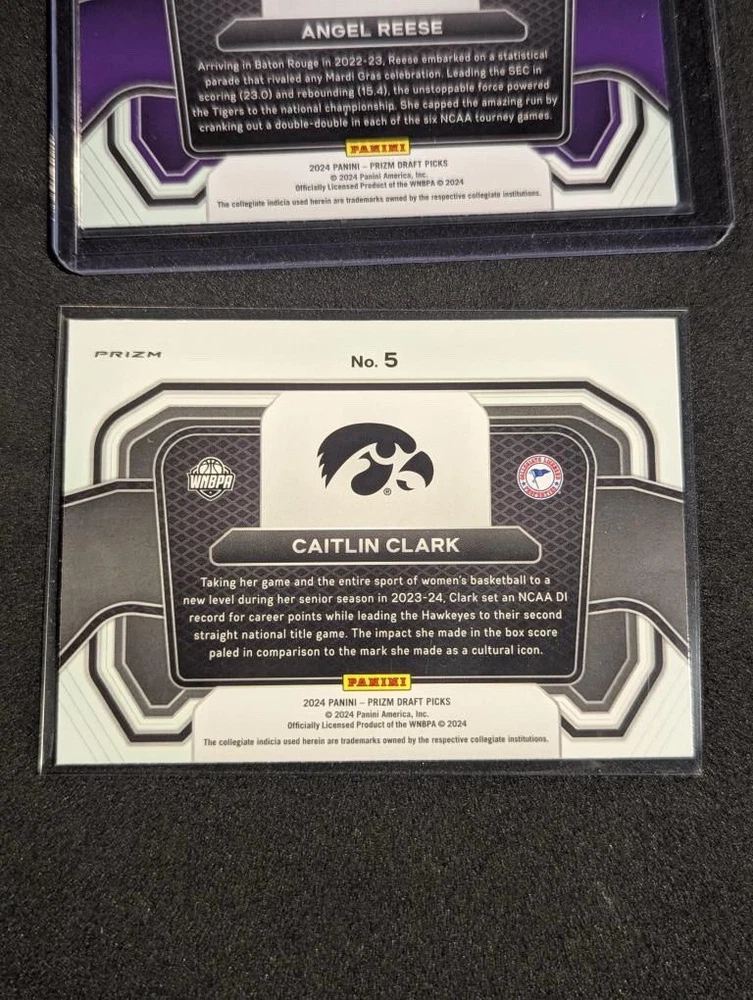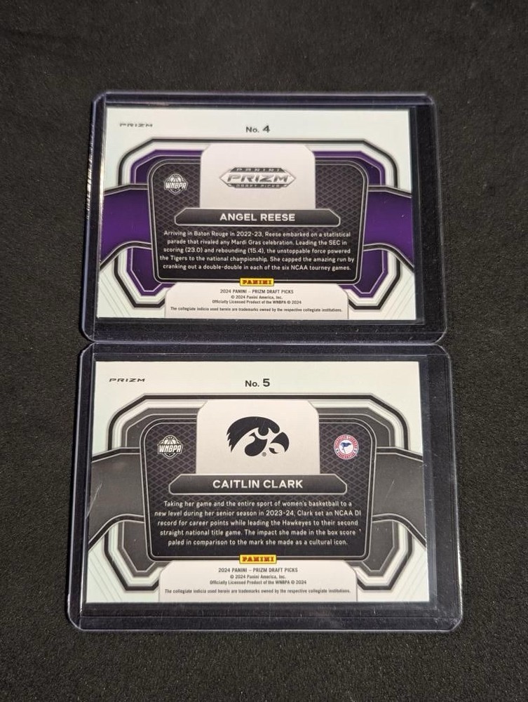 Capture the excitement of the court with this 2024 Prizm Draft Picks 2-card lot featuring rising stars Caitlin Clark and Angel Reese. Celebrate their dynamic presence in the Women's National Basketball Association with these striking Red Wave cards, a must-have for any basketball enthusiast or trading card collector. Each card showcases these athletes at the pinnacle of their game, making it an ideal addition to your collection. Whether you're looking to commemorate their achievements or simply appreciate the artistry of sports memorabilia, this duo from the 2024 season is a standout representation of talent and dedication.