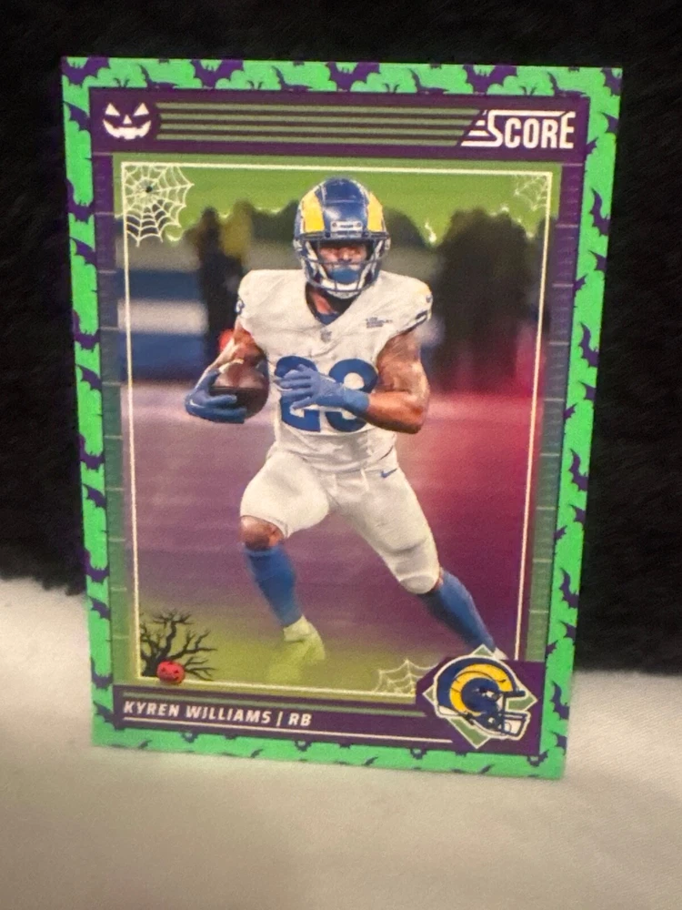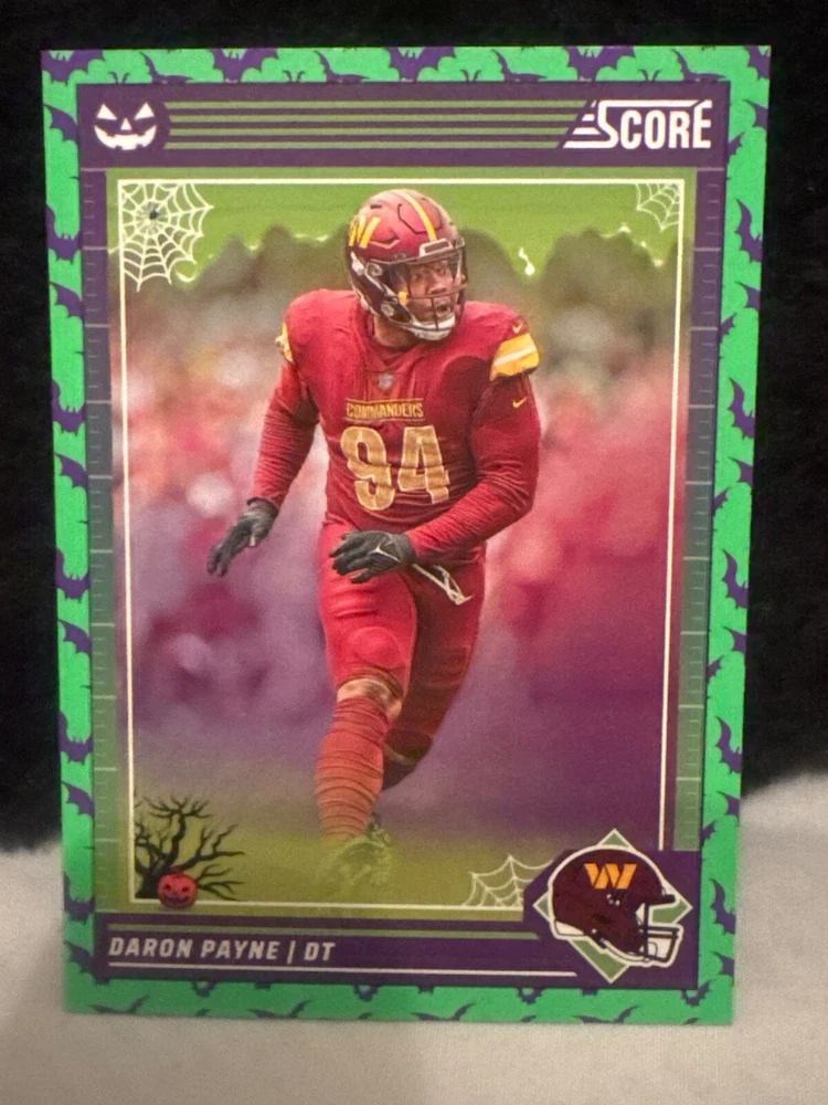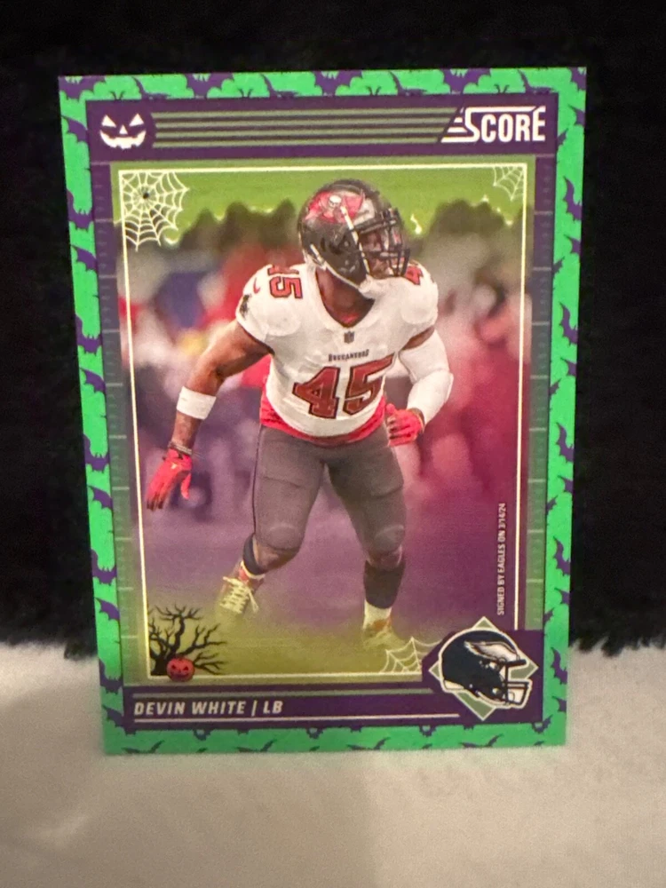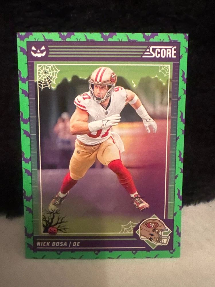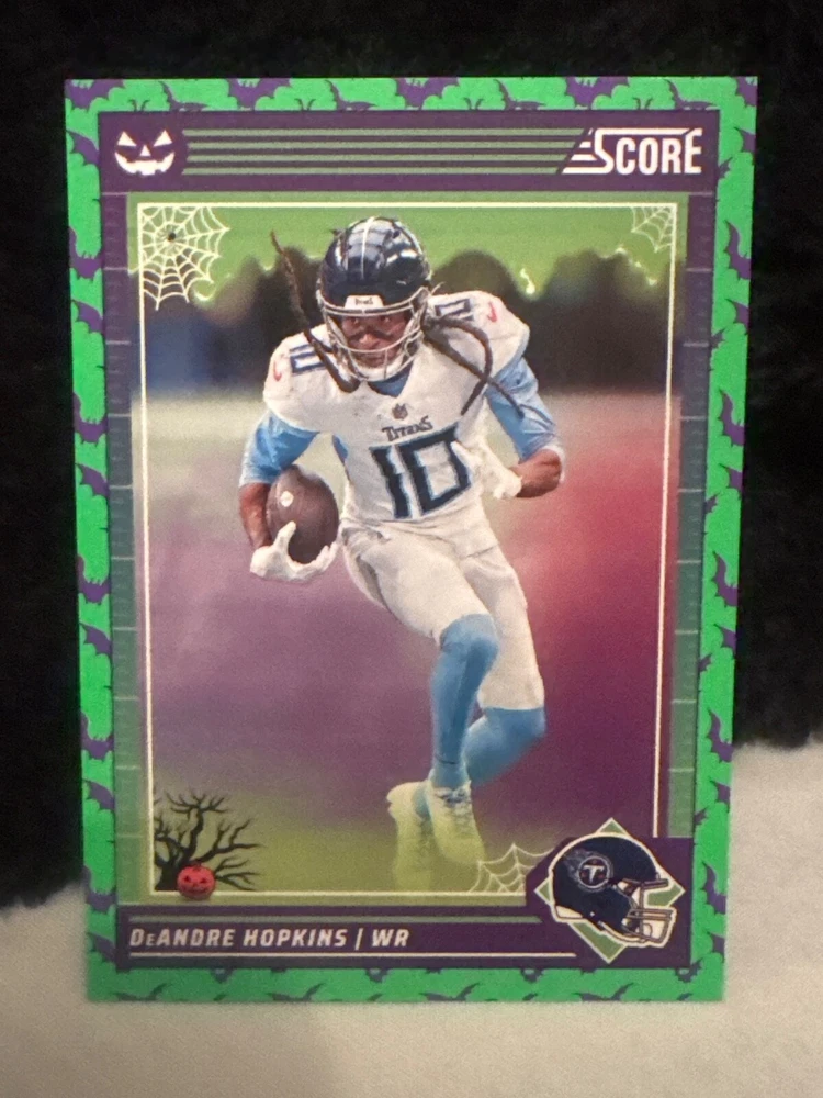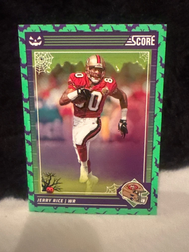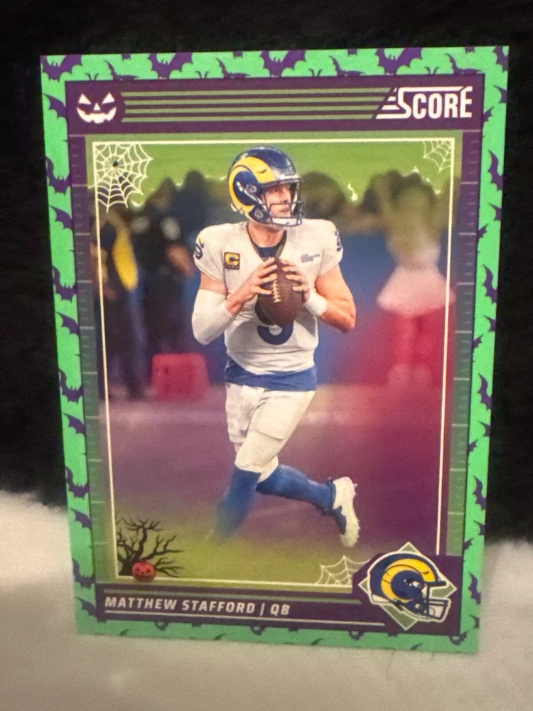 Complete your set of 2024 Score A Treat Football trading cards with the Green Bats parallel/variety. This card features some of the most exciting players in the National Football League (NFL), including Aaron Donald, Taysom Hill, and Randy Moss. The card is an original, licensed reprint from Panini and is part of the base set. The card number is 151-300 and it is a standard size for sports trading cards. The language is in English and the cards were manufactured in the United States. This card is a great addition to any football fan's collection, especially those who are fans of the San Francisco 49ers, Houston Texans, or Philadelphia Eagles.