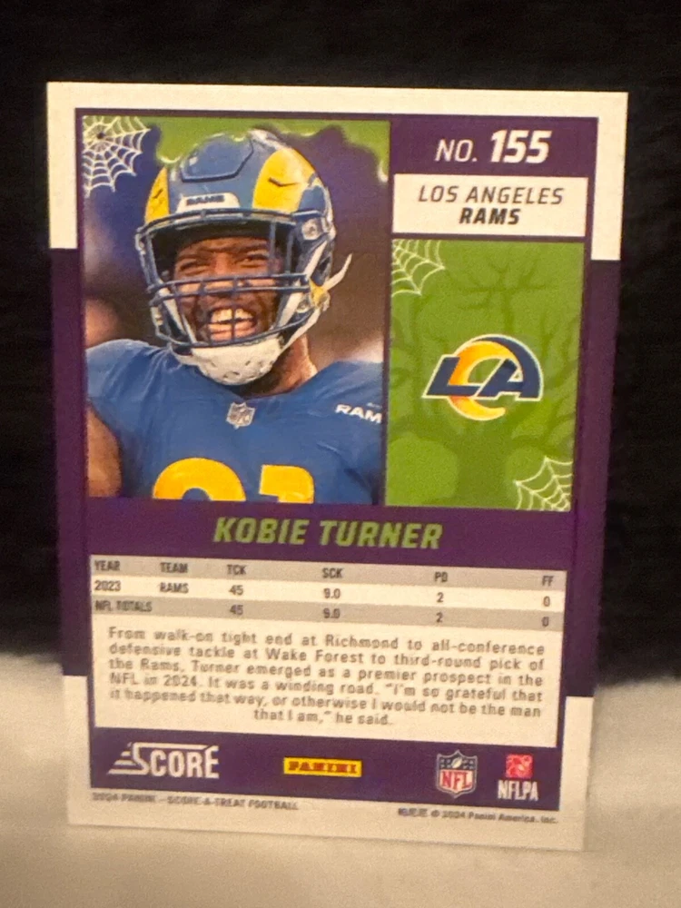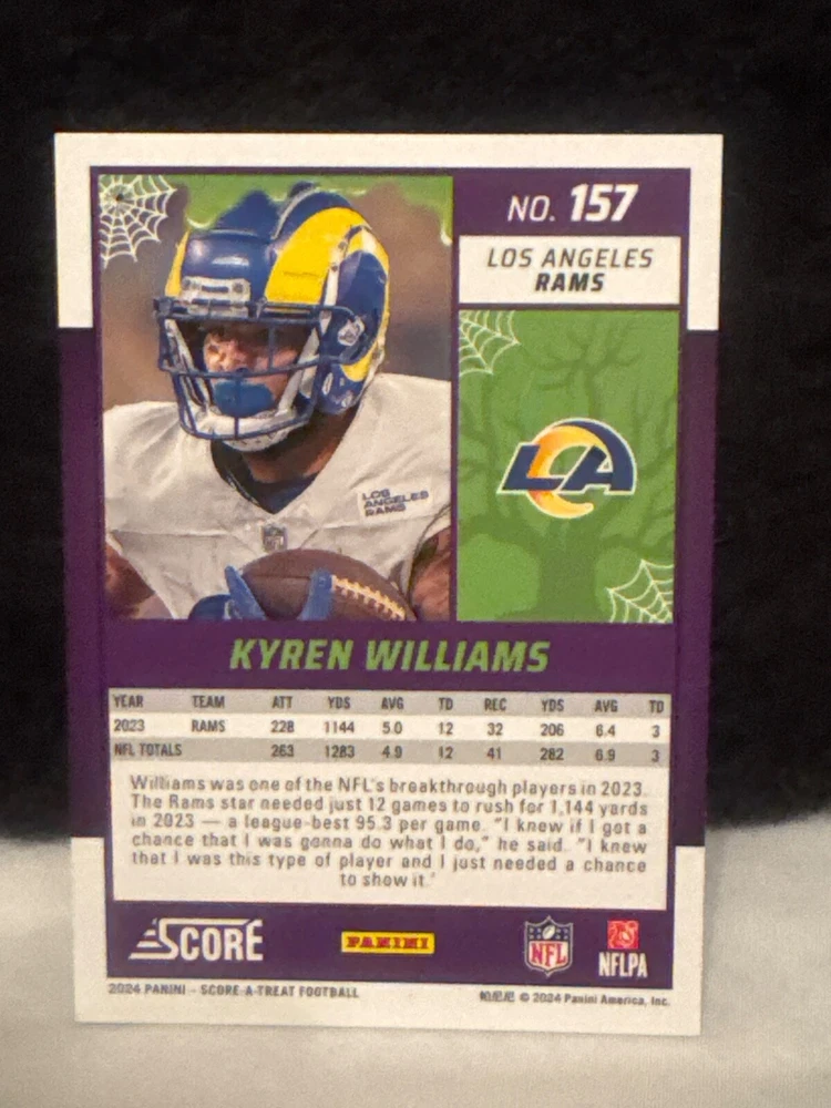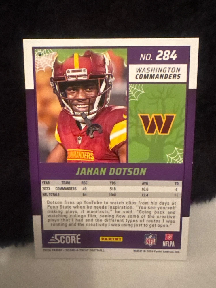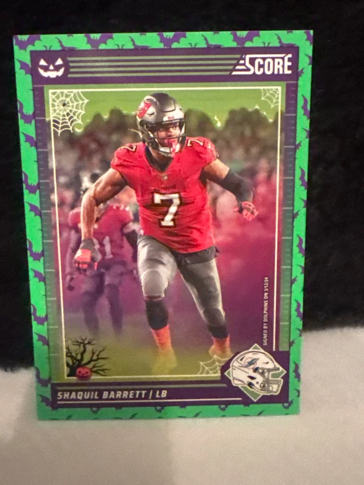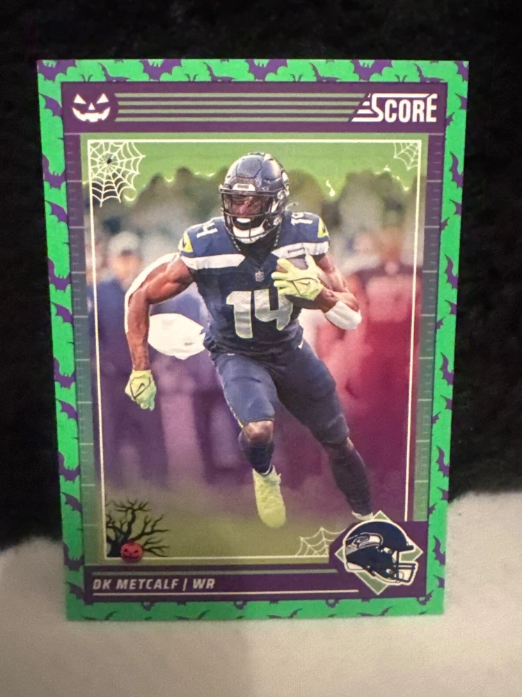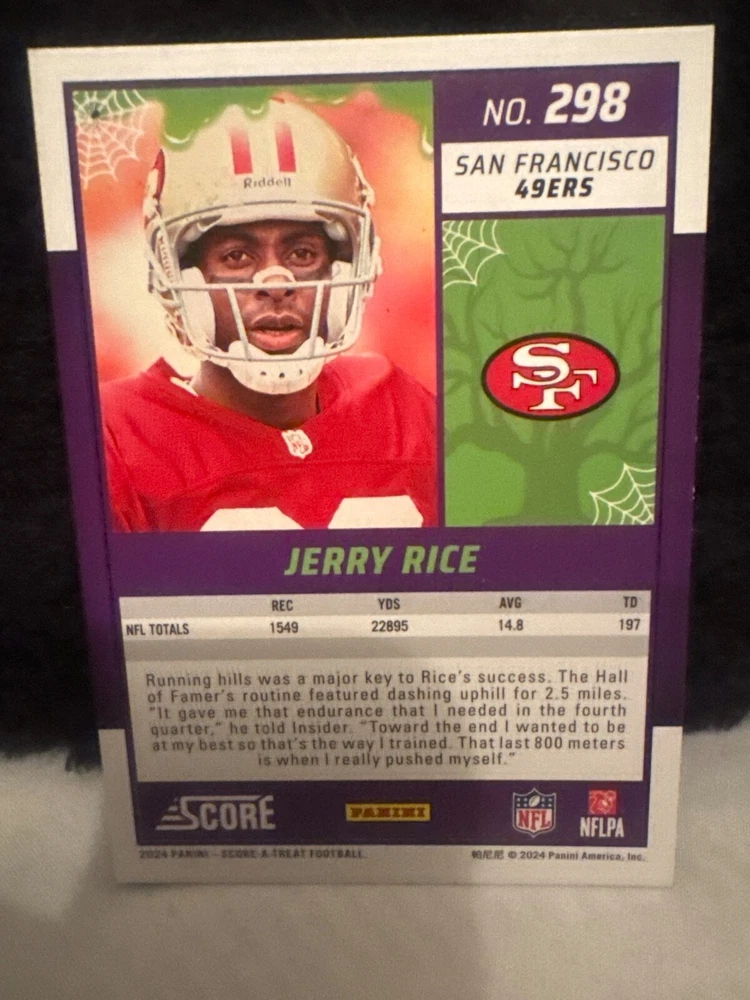 Complete your set of 2024 Score A Treat Football trading cards with the Green Bats parallel/variety. This card features some of the most exciting players in the National Football League (NFL), including Aaron Donald, Taysom Hill, and Randy Moss. The card is an original, licensed reprint from Panini and is part of the base set. The card number is 151-300 and it is a standard size for sports trading cards. The language is in English and the cards were manufactured in the United States. This card is a great addition to any football fan's collection, especially those who are fans of the San Francisco 49ers, Houston Texans, or Philadelphia Eagles.