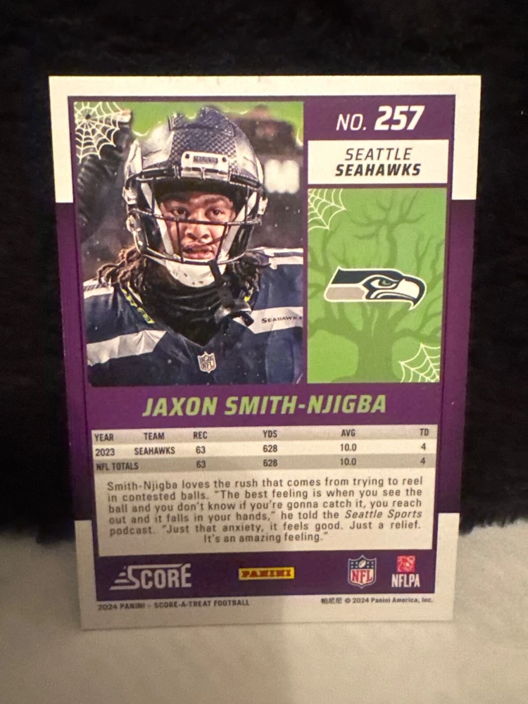 Player/Athlete: Aaron Donald, Aaron Rodgers, Ahmad Gardner, Alvin Kamara, Bo Jackson, Charles Woodson, Chris Olave, Dan Marino, Deion Sanders, Derek Carr, Drew Brees, Eli Manning, Frank Gore, George Pickens, Jalen Hurts, Jamaal Williams, Jerry Rice, Joey Bosa, Justin Herbert, Justin Jefferson, Khalil Mack, Marcus Allen, Matthew Stafford, Phil Simms, Puka Nacua, Randy Moss, Taysom Hill, Tua Tagovailoa, Tyreek Hill, Pua Nacua Language: English Type: Sports Trading Card Autographed: No League: National Football League (NFL) Vintage: No Year Manufactured: 2024 Season: 2024 Features: Base Set, Parallel/Variety, Green Bats Parallel/Variety: Green Bats Team: Arizona Cardinals, Atlanta Falcons, Buffalo Bills, Carolina Panthers, Chicago Bears, Cincinnati Bengals, Cleveland Browns, Denver Broncos, Green Bay Packers, Houston Texans, Indianapolis Colts, Jacksonville Jaguars, Kansas City Chiefs, Las Vegas Raiders, Los Angeles Chargers, Los Angeles Rams, Miami Dolphins, Minnesota Vikings, New England Patriots, New Orleans Saints, New York Giants, New York Jets, Philadelphia Eagles, Pittsburgh Steelers, San Francisco 49ers, Seattle Seahawks, Tennessee Titans, Washington Commanders, Ravens, Jets Set: 2024 Score Country/Region of Manufacture: United States Card Size: Standard Card Number: 151-300 Original/Licensed Reprint: Original Sport: Football Manufacturer: Panini