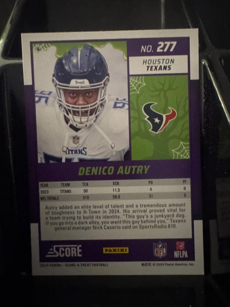 Complete your set of 2024 Score A Treat Football trading cards with the Green Bats parallel/variety. This card features some of the most exciting players in the National Football League (NFL), including Aaron Donald, Taysom Hill, and Randy Moss. The card is an original, licensed reprint from Panini and is part of the base set. The card number is 151-300 and it is a standard size for sports trading cards. The language is in English and the cards were manufactured in the United States. This card is a great addition to any football fan's collection, especially those who are fans of the San Francisco 49ers, Houston Texans, or Philadelphia Eagles.