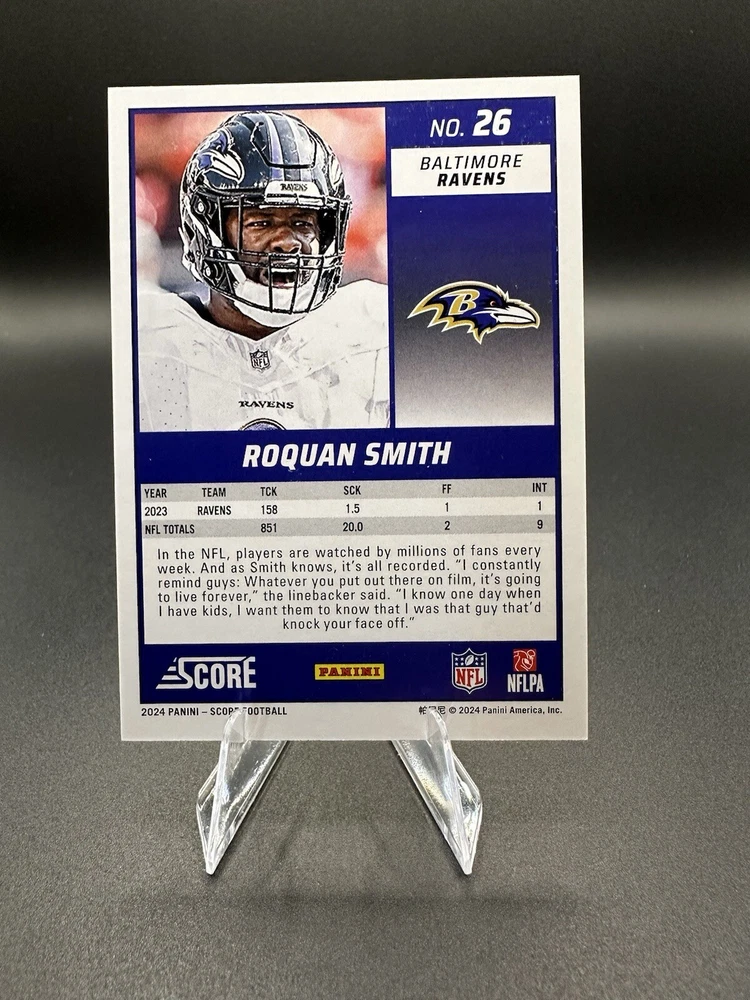 Type:Sports Trading CardInsert Set:017Parallel/Variety:LavaFeatures:Serial Numbered, Parallel/Variety, Base SetSport:FootballPlayer/Athlete:Roquan SmithSet:2024 ScoreLeague:National Football League (NFL)Season:2024Print Run:630Manufacturer:PaniniCard Number:26
