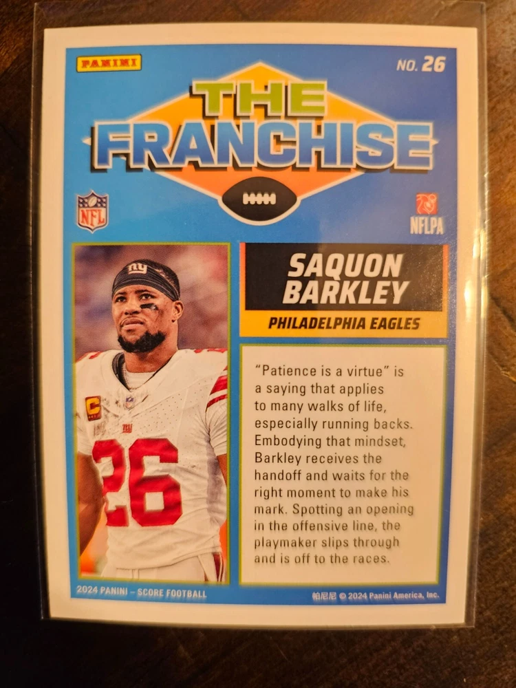 2024 Score Saquon Barkley The Franchise #26. Free shipping!