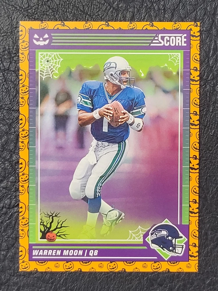 This lot includes five Seattle Seahawks trading cards from the 2024 Score set. The cards feature players DK Metcalf, Smith Njigba, Kenneth Walker III, Noah Fant, and Warren Moon. The set includes both base cards and parallel cards, and is perfect for any fan of the National Football League (NFL). These cards are in standard size and manufactured by Panini in the United States. The set is a great addition to any sports trading card collection and celebrates the team's Super Bowl victory.