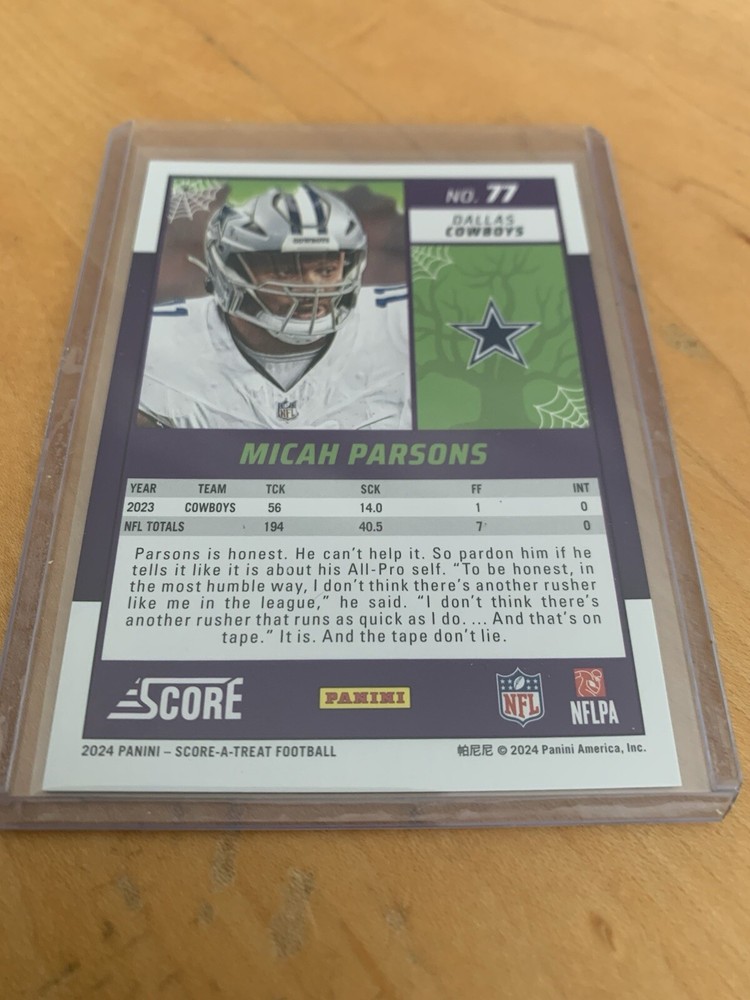 2024 Score-A-Treat #77 Micah Parsons Green Bats Dallas Cowboys Football Card. Condition is Ungraded. Shipped with eBay Standard Envelope for eligible items up to $20.