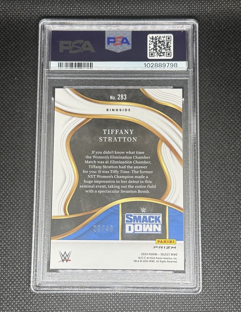 2024 Select WWE Tiffany Stratton Ringside Blue Wave /49 PSA 10 #283