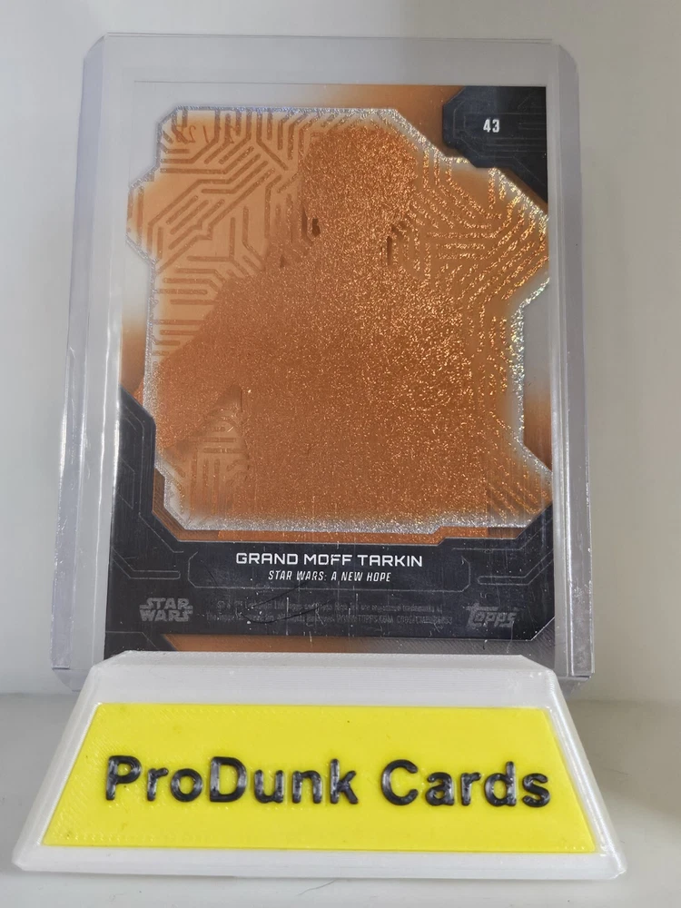The 2024 Star Wars High Tek SSP Grand Moff Tarkin Laser Pattern Orange trading card is a rare and collectible non-sport trading card featuring the character Grand Moff Tarkin from the Star Wars franchise. Manufactured by Topps in 2024, this card is part of a limited edition set with a unique orange parallel variety. It is serial numbered as 21 out of 25, making it a highly sought-after item for Star Wars enthusiasts and trading card collectors.