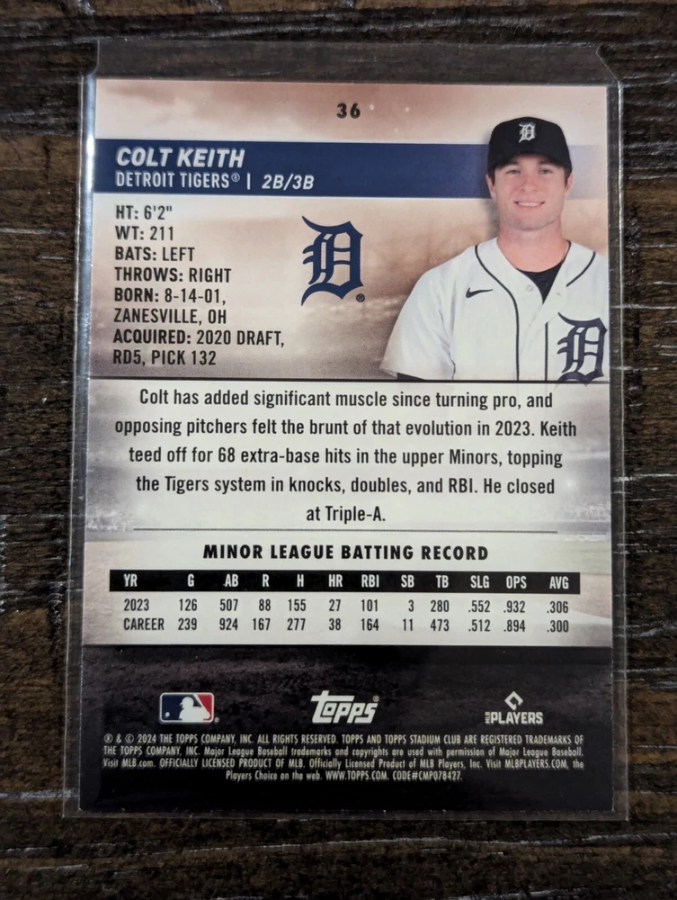 2024 TOPPS STADIUM CLUB COLT KEITH (RC) #36 BLACK FOIL PARALLEL Will ship in a penny sleeve, top loader, and Armalope.