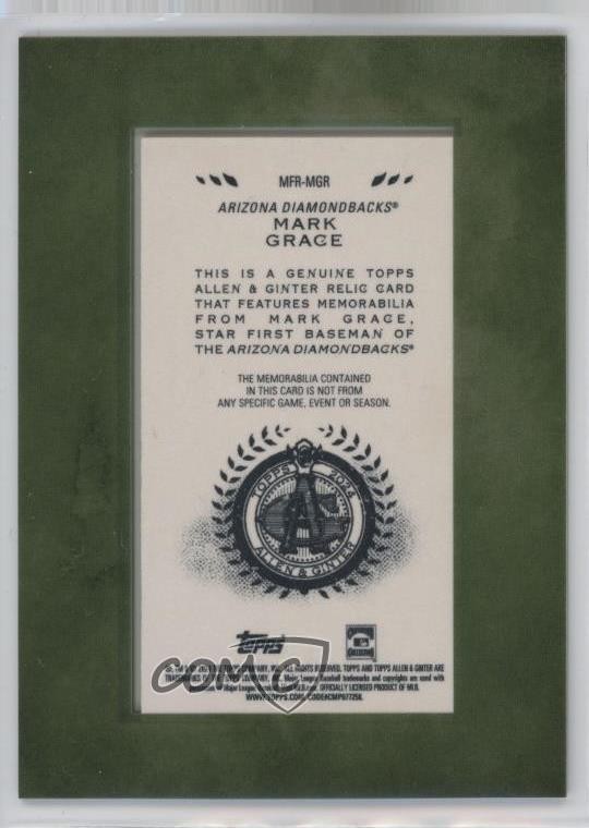 This card is a must-have for collectors! The mini framed relic design looks sharp, and the Mark Grace memorabilia adds a cool vintage feel. The quality is top-notch, and it’s a great addition to any Allen & Ginter set. Love the unique look—definitely stands out in my collection!