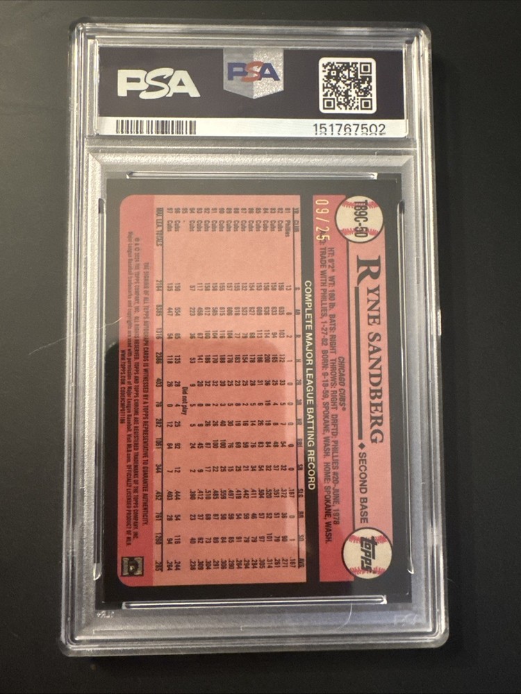 The 2024 Topps Chrome 35th Anniversary Ryne Sandberg Orange /25 Autograph PSA 8 card is a highly sought-after sports trading card featuring the legendary Major League Baseball player Ryne Sandberg. This limited edition card is professionally graded by PSA as an 8, ensuring its authenticity and quality. Signed by Sandberg himself in hard format, this card is part of the Topps Chrome set and is a valuable addition to any baseball card collection, especially for fans of the Chicago Cubs and collectors of rare autographed cards. The orange parallel adds a unique touch to this special edition card.