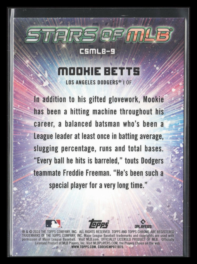 2024 Topps Mookie Betts Cards typically ship each morning around 5 am. I offer the following shipping services: ebay standard envelope: this is put in a semi rigid card holder with a piece of blue painters tape sealing it and in a plain white envelope with tracking. This is typically for cheaper cards ($20 or less). This service may not be available for thicker cards. USPS First Class: this is put in a top loader, then into a team bag with a piece of card board in it as well. Then shipped in a bubble mailer with tracking. This is for individuals that do not like the idea of the plain white envelope or for cards $20-100. USPS Priority Small Flat Rate Box: this is put into a top loader, then into a priority bubble mailer, then lastly into a flat rate priority box with tracking. Ideally for cards priced over $100. Please check my store as I combine shipping.