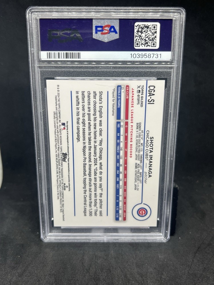 2024 Topps Gilded Collection Shota Imanaga Blue Rookie Auto #/50 PSA 10. Condition is Graded. Shipped with USPS Ground Advantage.