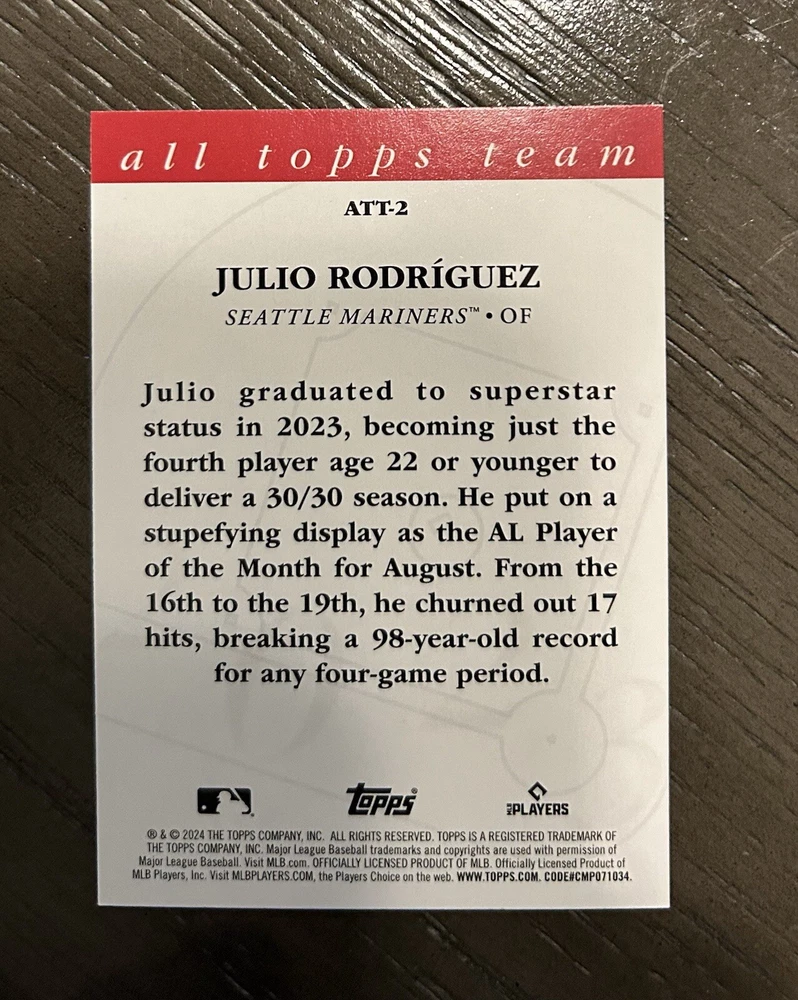 🚨2024 Topps Series 1 & 2 - All Topps Team 2023 - (2 Card Lot) Ohtani & J-Rod🚨 #ATT-2 - Julio Rodriguez- Seattle Mariners #ATT-8 - Shohei Ohtani - Los Angeles Angels