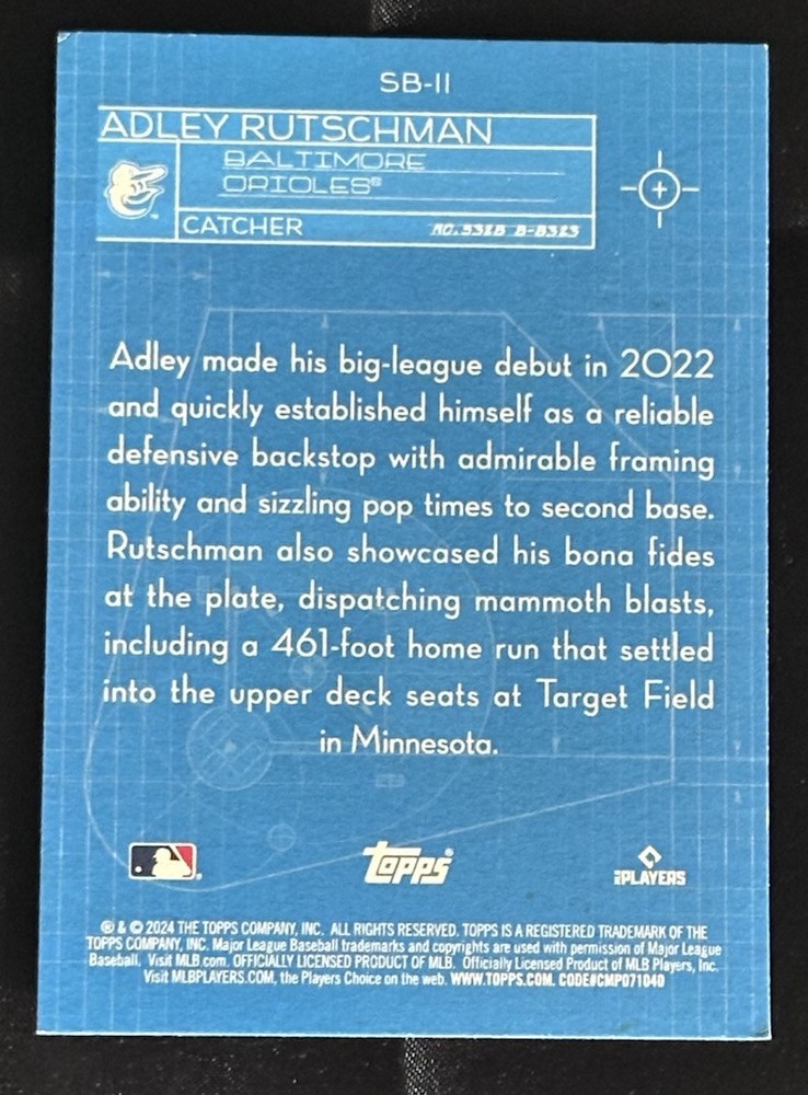 2024 Topps “superstar Blueprint” Insert, of phenom Catcher Adley Rutschman of the Baltimore Orioles. Card #SB-11. Card ships in standard envelope
