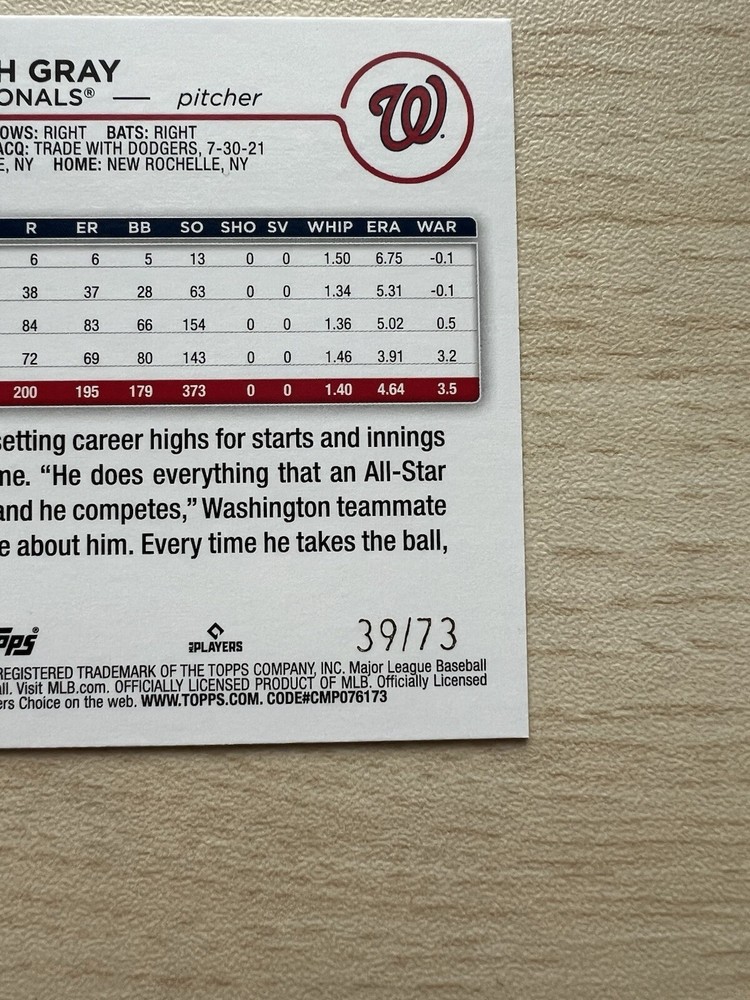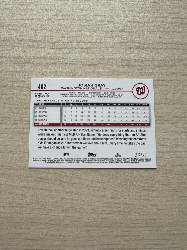 JOSIAH GRAY 2024 Topps Series 2 #402 Black Parallel #39/73