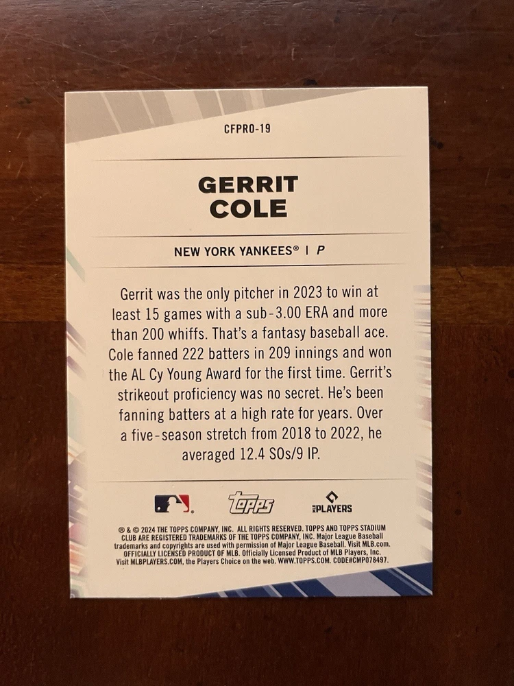 2024 Topps Stadium Club Gerrit Cole #CFPRO-19 Chief Fantasy Professional Yankees