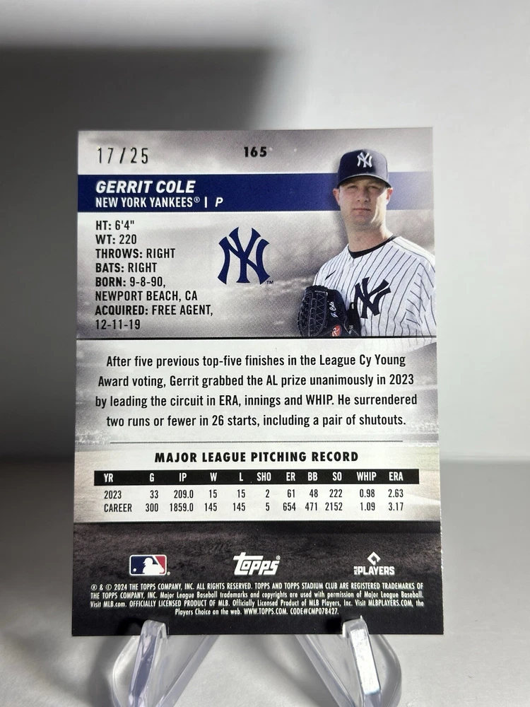2024 Topps Stadium Club Gerrit Cole Rainbow Foil /25 SSP Case Hit NY Yankees