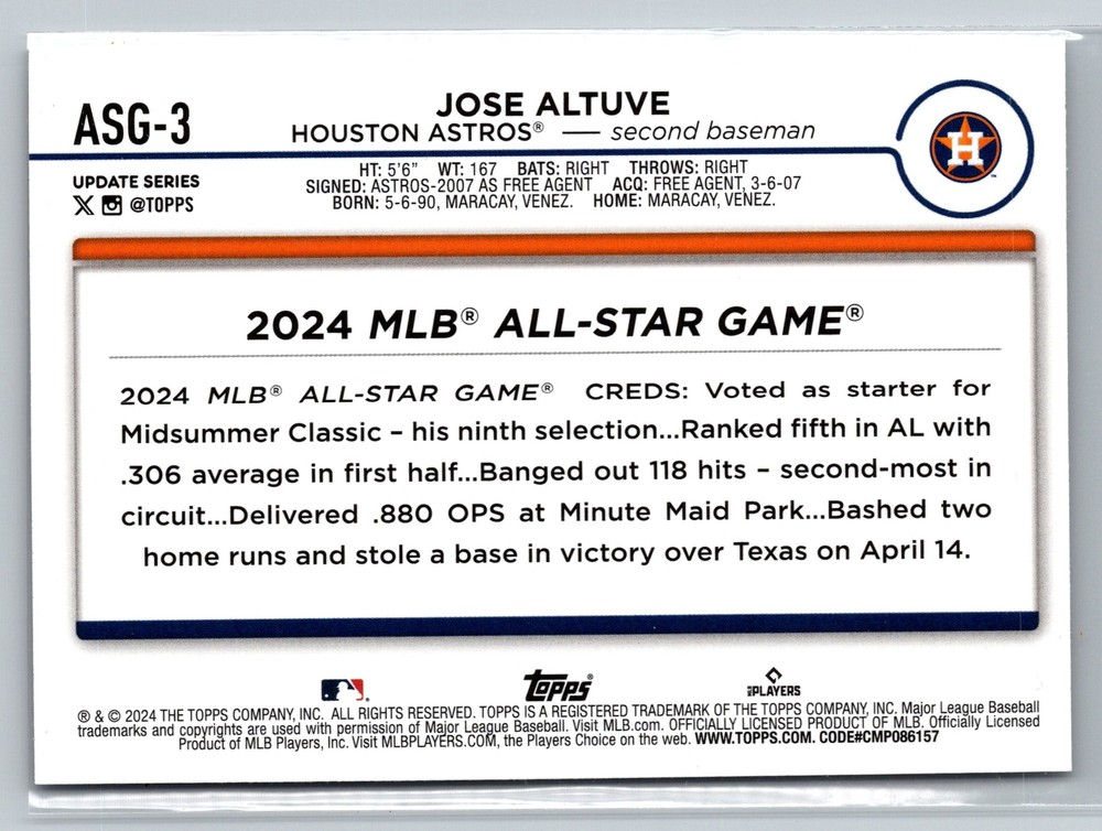 2024 Topps Update ASG-3 Jose Altuve All-Star Game Insert Card