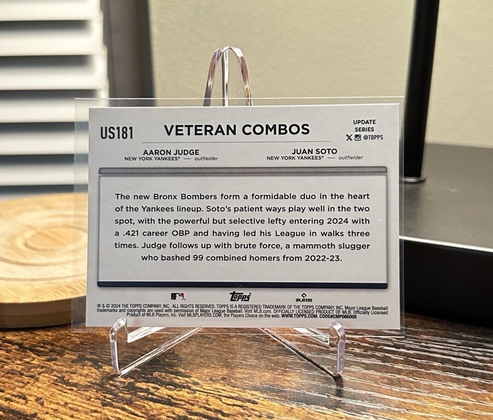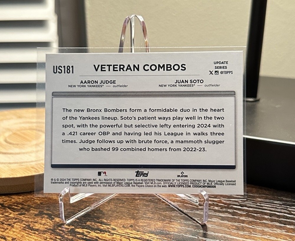 2024 Topps Update Series - Veteran Combos Aaron Judge, Juan Soto #US181 Yellow