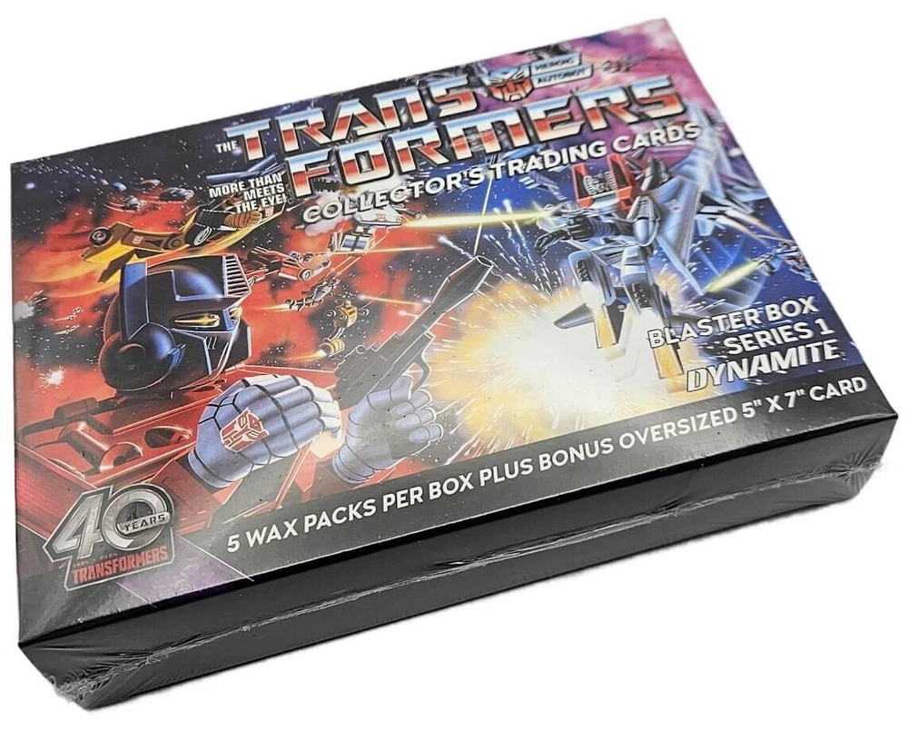 2024 Transformers 40th Anniversary - Sealed Blaster Box 5 Packs Per Box - 10 Cards Per Pack 1 Glossy Rainbow Holofoil Per Pack 1 Oversized 5x7 Card Per Box