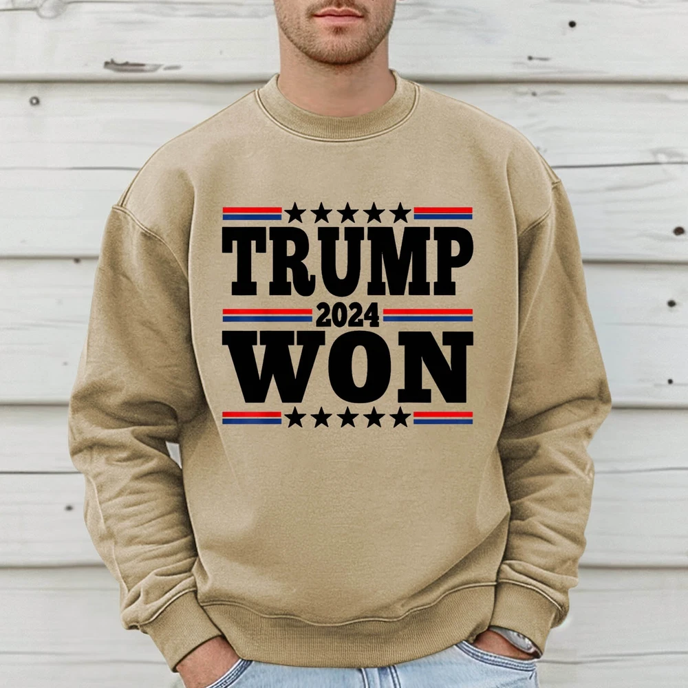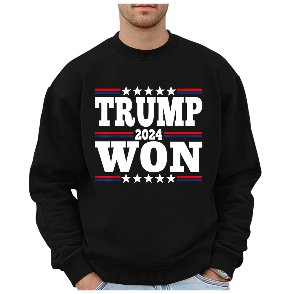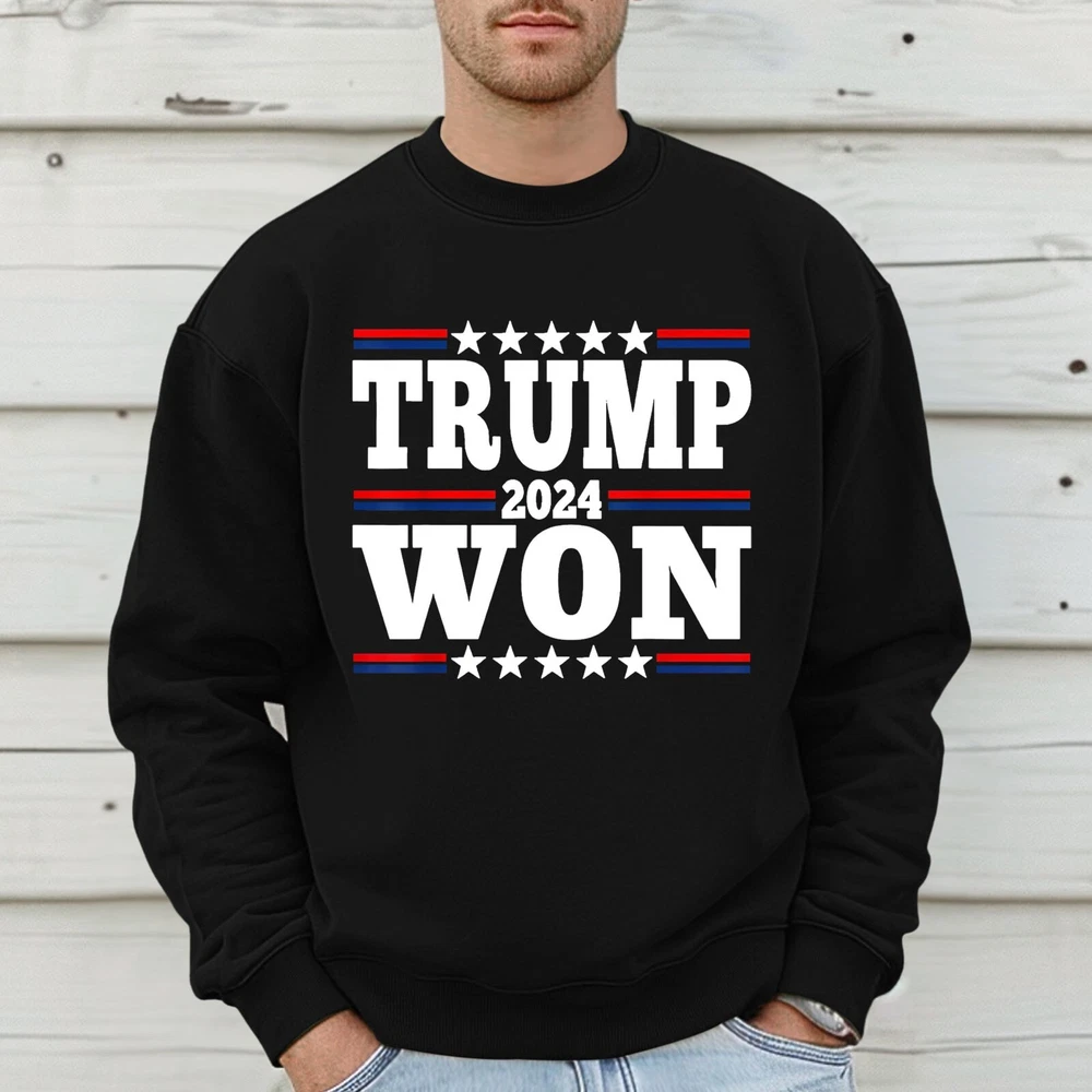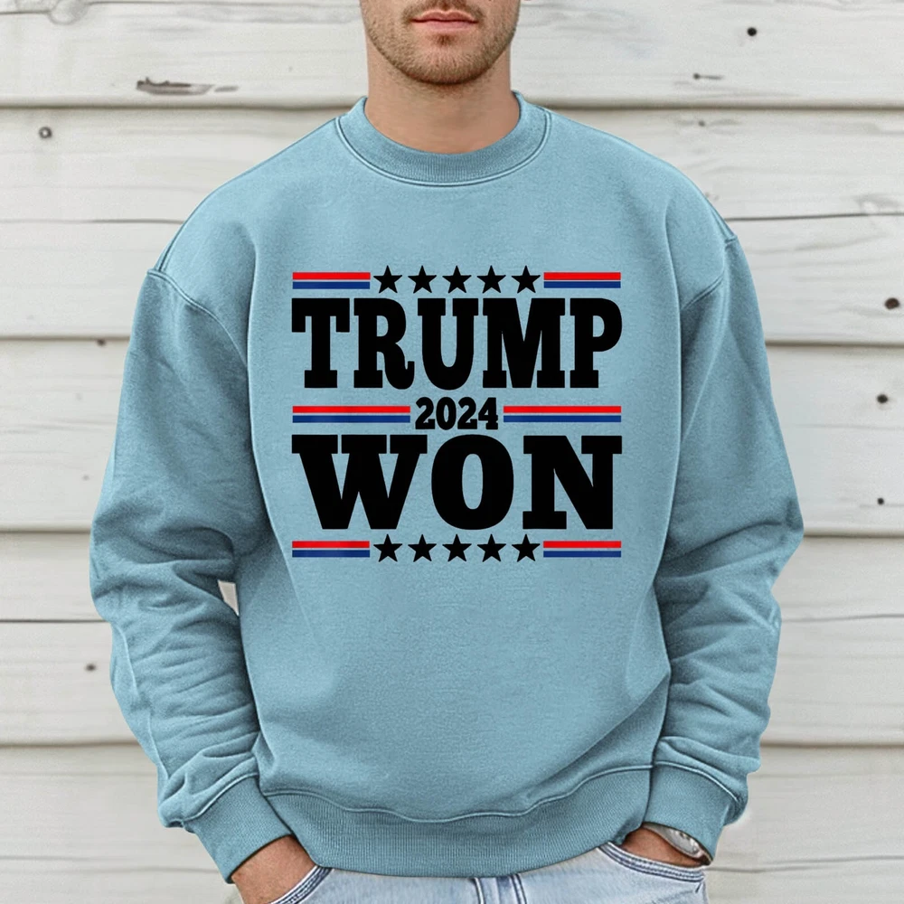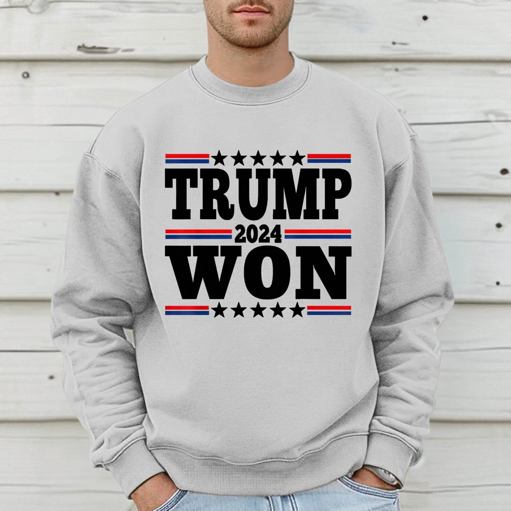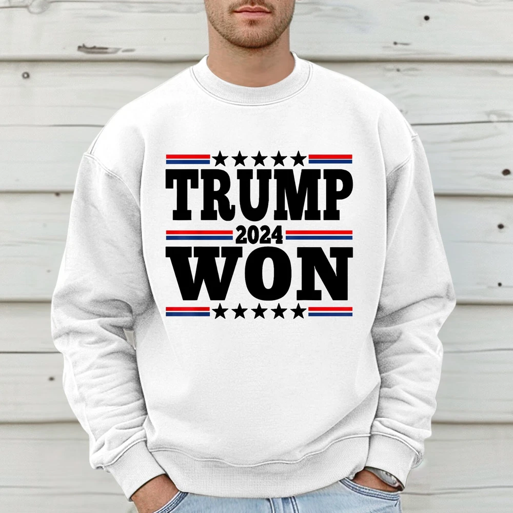 2024 US Trump Won Elect Theme Casual Crewneck Graphic Plus Shirt Printed Solid