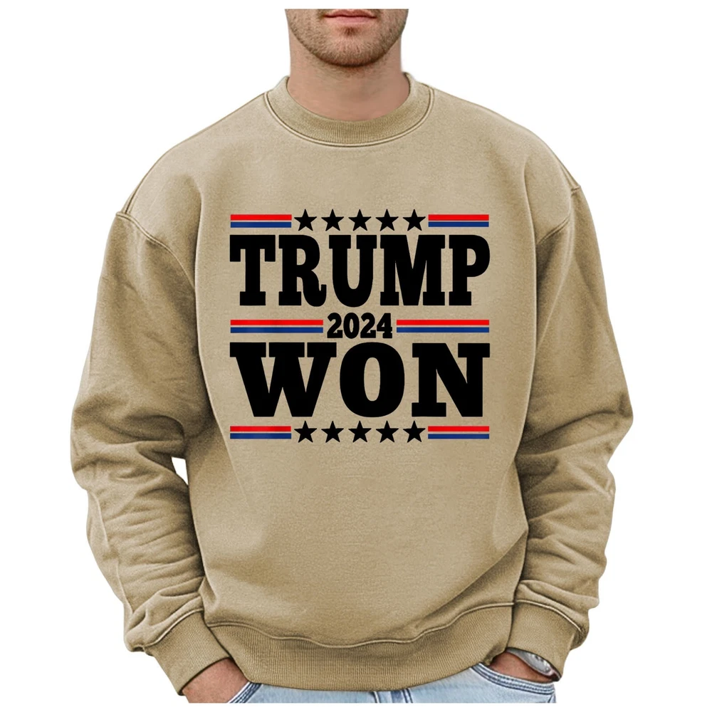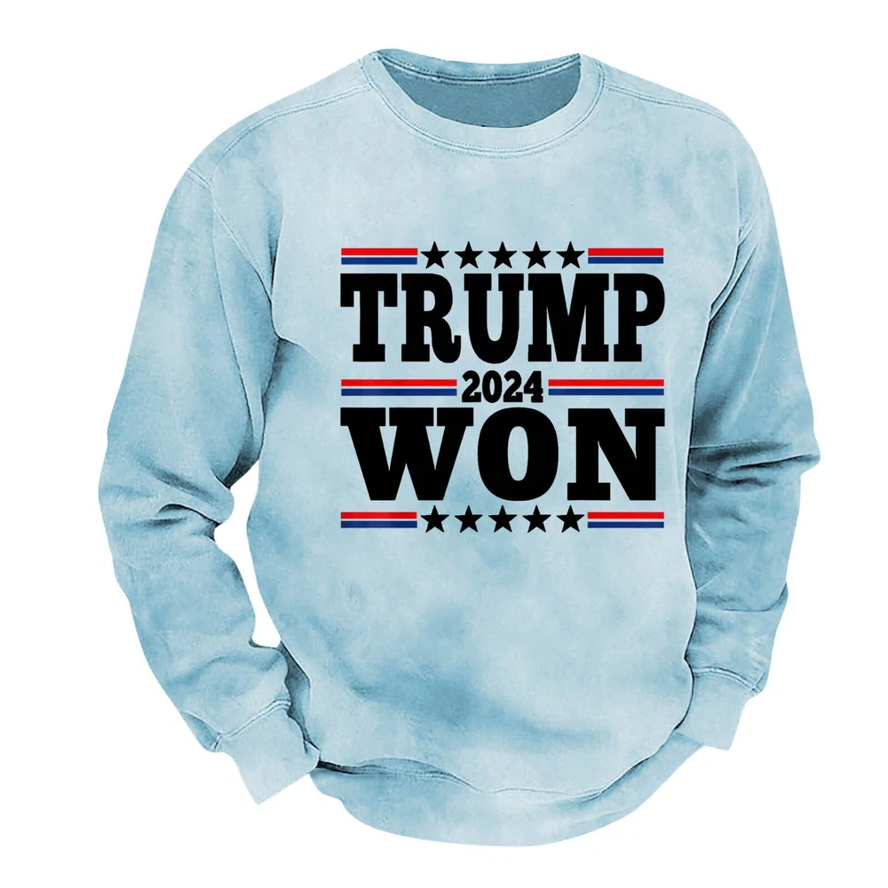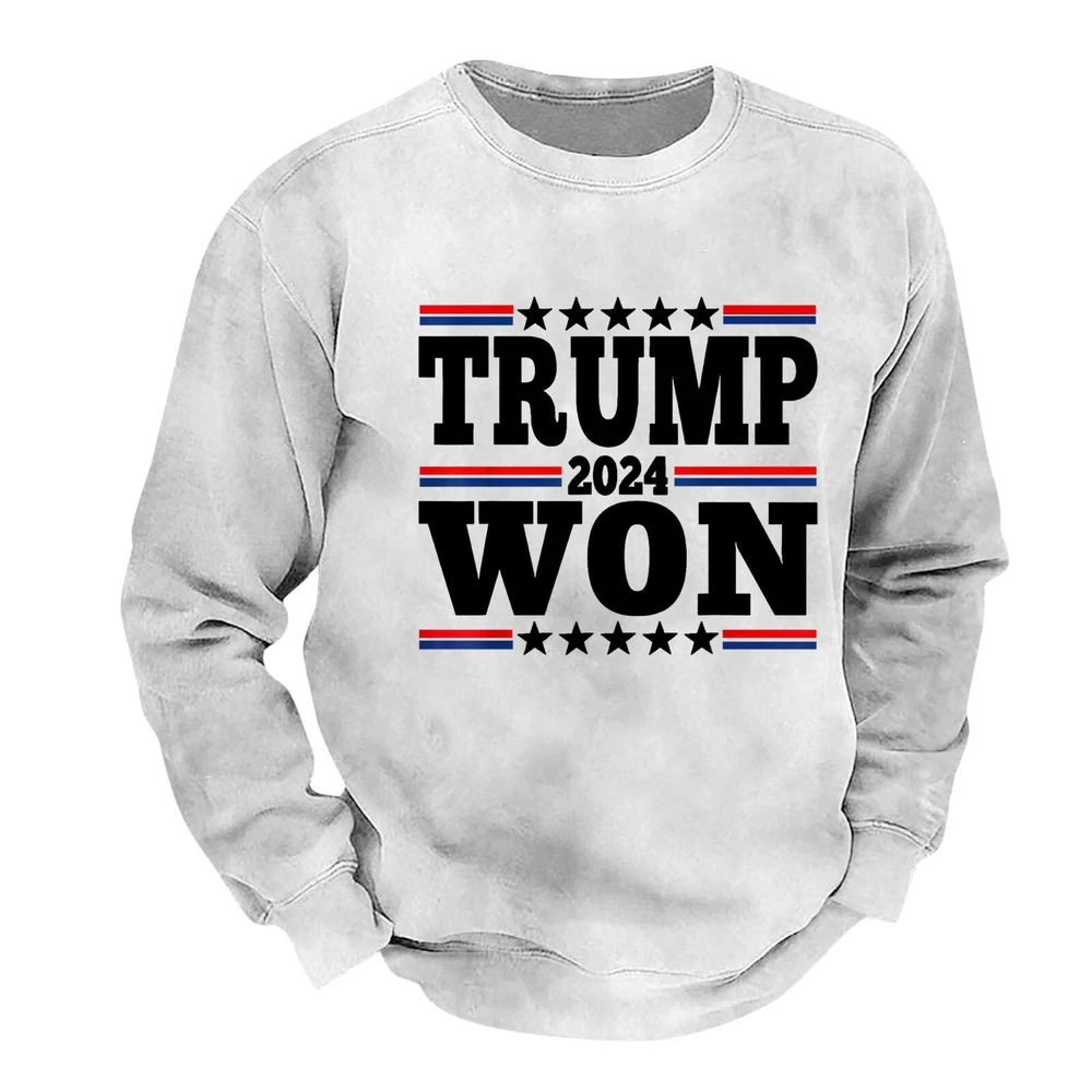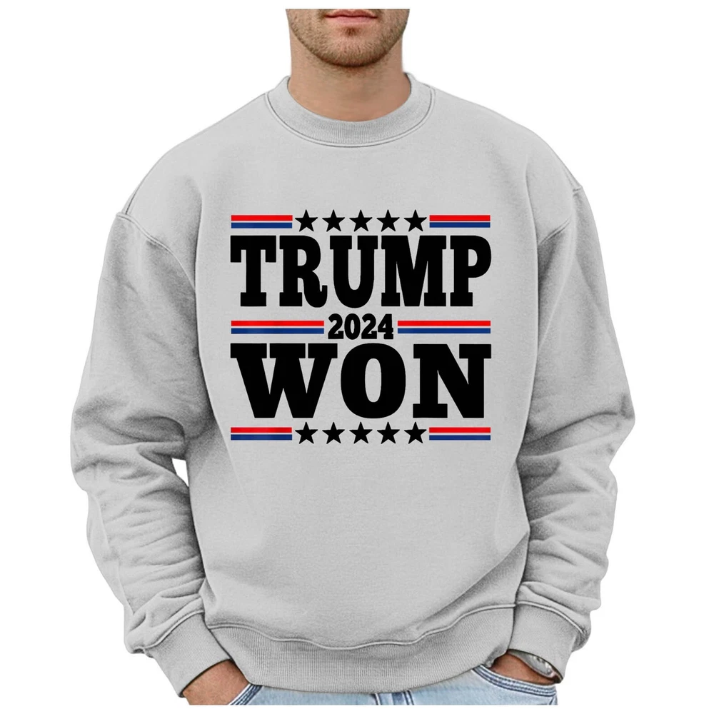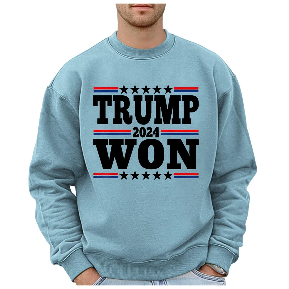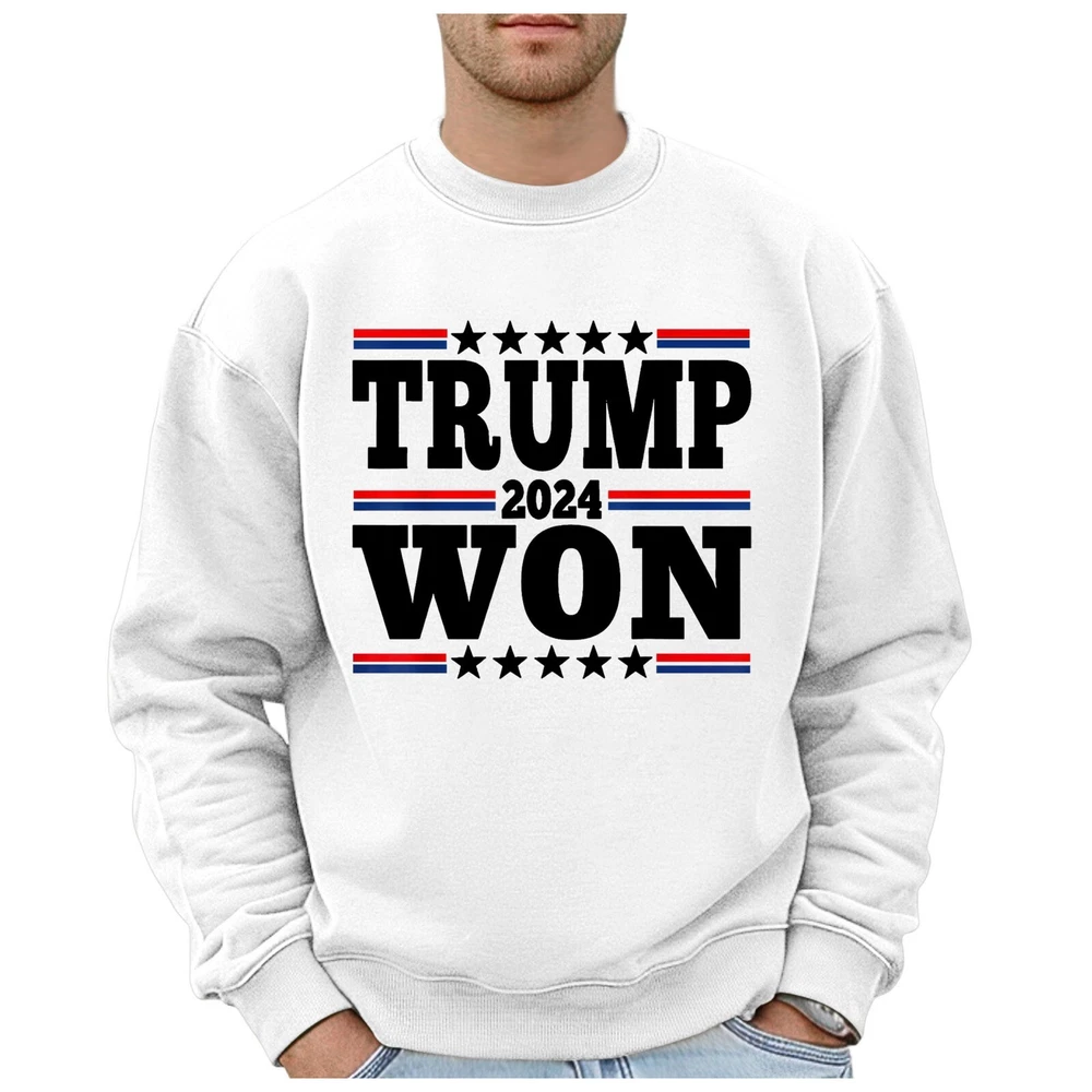 2024 US Trump Won Elect Theme Casual Crewneck Graphic Plus Shirt Printed Solid
