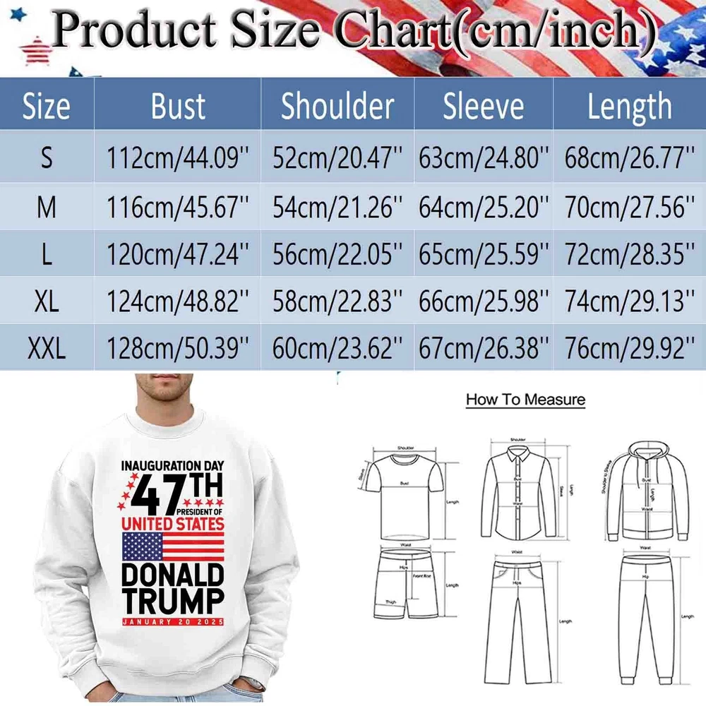 2024 US Trump Won Elect Theme Casual Crewneck Graphic Plus Shirt Printed Solid Features: Material:It is made with soft fabric,This tank is very cool to wear and you will feel comfortable all day. Embroidered logo at chest, Drawstring hood and zip placket, Long sleeves with ribbed cuffs Spring,Fall and Winter Great for leggings,suitable for daily life, party, beach, vacation,,make you and cool. Regular fit, soft and comfortable. For Women and Juniors. Product Description: Season: All seasons Gender: Men Occasion: Daily and home Style: Fashionable Material: Polyester Pattern Type: Solid Sleeve Length: Length Fit: Fit for size What you get: 1 PC Sweatshirt Size Bust Shoulder Sleeve Length S 112cm/44.09'' 52cm/20.47'' 63cm/24.80'' 68cm/26.77'' M 116cm/45.67'' 54cm/21.26'' 64cm/25.20'' 70cm/27.56'' L 120cm/47.24'' 56cm/22.05'' 65cm/25.59'' 72cm/28.35'' XL 124cm/48.82'' 58cm/22.83'' 66cm/25.98'' 74cm/29.13'' XXL 128cm/50.39'' 60cm/23.62'' 67cm/26.38'' 76cm/29.92'' Size:S Bust:112cm/44.09'' Shoulder:52cm/20.47'' Sleeve:63cm/24.80'' Length:68cm/26.77'' Size:M Bust:116cm/45.67'' Shoulder:54cm/21.26'' Sleeve:64cm/25.20'' Length:70cm/27.56'' Size:L Bust:120cm/47.24'' Shoulder:56cm/22.05'' Sleeve:65cm/25.59'' Length:72cm/28.35'' Size:XL Bust:124cm/48.82'' Shoulder:58cm/22.83'' Sleeve:66cm/25.98'' Length:74cm/29.13'' Size:XXL Bust:128cm/50.39'' Shoulder:60cm/23.62'' Sleeve:67cm/26.38'' Length:76cm/29.92''