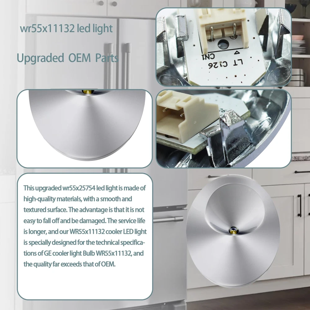 Upgrade:wr55x11132 led light is made of high quality materials, it can make the Ge WR55x11132 cooler LED light that you can't work look brand-new. Its quality exceeds that of Ge Cooler Light Bulb WR55x1132, but due to the design of a few refrigerators, the circuits are connected in series. When one Ge Cooler Light WR55x25754 does not work, other Ge Cooler LED covers need to be replaced at the same time. Model:wr55x11132 wr55x25754 led light replace WR55X26487 WR55X30603 WR55X30602 WR55XAP5646375 PS4704284 refrigerator led light assembly. Compatible with ge DFE28JMKFES DFE28JSHBSS DFE28JSHCSS DFE28JSHDSS DFE28JSHESS DFE28JSHFSS DFE28JSKBSS DFE28JSKDSS DFE28JSKESS DFE28JSKFSS DFE29JGDABB DFE29JGDAWW DFE29JGDBBB DFE29JGDBWW DFE29JGDCBB DFE29JGDCWW DFE29JGDDBB DFE29JGDDWW DFE29JGDEBB DFE29JGDEWW DFE29JGDFBB DFE29JGDFWW DFE29JGDGBB DFE29JGDGWW etc refrigerator parts. Absolute Quality And Confidence:We pay the most attention to the product quality and shopping experience of our customers. Product quality is the core of our products, and the shopping experience is the most basic standard to test our integrity, so we have the responsibility to provide our customers with the highest quality, most affordable, and most cost-effective sources of goods. Excellent Value For Money:We have a professional refrigerator led cover factory, so our products are very friendly to customers in quality and price. We have a professional team,We provide express logistics and will solve 100% of any problems with the product within two years. Quick installation:WR55x11132 WR55x25754 LED light installation is simple and fast. Before replacement, wear work gloves, remove the original wr55x25754 ge LED light, and replace our OEM wr55x11132. You can also search for wr55x25754 wr55x11132 wr55x26487 wr55x30603 wr55x30602 wr55x26486 on YouTube to watch the installation video to prevent it from not working properly after installation.