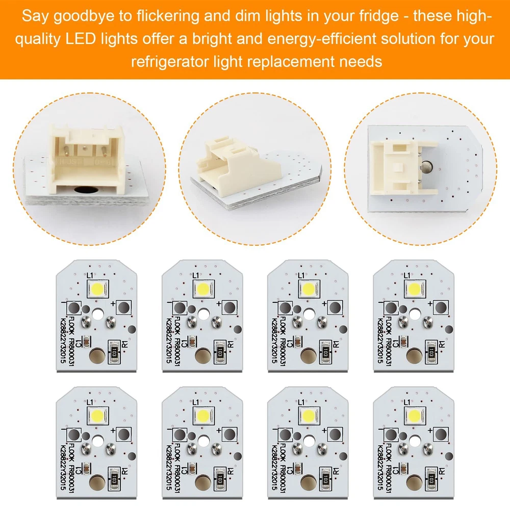 refrigerator LED light perfect solution for your appliance lighting needs. Our model WR55X11132 is a pack of 8 excellent quality LED lights designed to enhance your kitchen experience. Say goodbye to flickering or dim lights with these waterproof and easy-to-install lights. Compatible with various refrigerator appliance models, the Refrigerator LED LIGHT is the ideal choice for those looking for a reliable refrigerator light bulb replacement. These LED refrigerator lights are guaranteed to provide bright and consistent lighting, ensuring you can see everything in your fridge clearly. Upgrade your refrigerator lighting with the Refrigerator LED LIGHT today and enjoy the benefits of energy-efficient, long-lasting LED technology. Illuminate your refrigerator with ease and style, and never worry about poor lighting in your kitchen again. Don't settle for subpar lighting in your refrigerator. Choose the Refrigerator LED light for a reliable, efficient, and durable lighting solution. Say goodbye to dim and flickering lights and hello to bright and consistent illumination with our premium LED bulbs. Enhance your kitchen experience with the Refrigerator LED LIGHT. Order yours now and see the difference our LED lightcan make in your appliance. Illuminate your refrigerator with the refrigerator parts & accessories WR55X11132- a pack of 8 waterproof bulbs designed to fit various refrigerator models, including GE led refrigerator light bulb,refrigerator led ge Say goodbye to flickering and dim lights in your fridge - these excellent quality LED lights offer a bright and energy-efficient solution for your refrigerator light replacement needs Easy to install, the Refrigerator LED LIGHT ensure a hassle-free setup process, providing instant illumination and enhancing visibility inside your refrigerator Compatible with GE refrigerator:GFE26GSHBSS GFE26GSHCSS GFE26GGKEBB GFE26GGKEWW GFE26GGKFBB GFE26GGKFWW GFE26GMKCES GFE26GMKDES GFE26GMKEES GFE26GMKFES GNE29GGKCWW GNE29GGKDBB GNE29GGKDWW GNE29GGKEBB GNE29GGKEWW GNE29GGKFBB GNE29GGKFWW GNE29GMKCES GNE29GMKDES GNE29GMKEES GNE29GSKCSS GNE29GSKDSS GNE29GSKESS GNE29GSKFSS GFE26GSKGSS DFE28JSKGSS GFE26GGKGWW GFE28HSKFSS GFE28GMKGES GFE28GSKHSS GFE26GSKHSS GFE26GMKGES GFD28GSLCSS GFE26GGHCBB GFE26GGHCWW GFE26GGHDBB GFE26GGHDWW GFE26GGHEBB etc Fit for GE models:GFE26GGHEWW GFE26GGHFBB GFE26GGHFWW GFE26GGHGBB GFE26GGHGWW GFE26GGKBBB GFE26GGKBWW GFE26GMHBES GFE26GMHCES GFE26GMHDES GFE26GMHEES GFE26GMHGES GFE26GMKBES DFE28JBLCTS DFE28JBLDTS DFE28JELCDS DFE28JELDDS DFE28JMKGES DFE28JMKHES DFE28JSKHSS GFD28GBLCTS GFD28GBLDTS GFD28GELCDS GFD28GELDDS GFD28GMLCES GFE26GGHBBB GFE26GGHBWW GFD28GMLDES GFD28GSLDSS etc