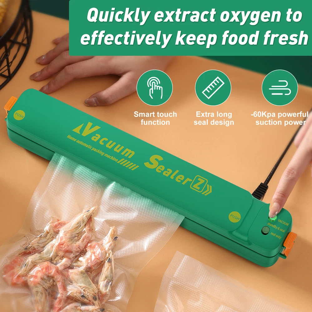 This vacuum sealer is a game-changer for keeping food fresh longer! It’s super easy to use—just load your food, press a button, and watch it quickly remove all the air. The green ABS body feels sturdy, and the included seal bags are a nice bonus. Perfect for meats, veggies, and leftovers—no more spoiled food! Compact yet powerful, it’s a must-have for any kitchen. Love how it locks in freshness and saves me money. Highly recommend!