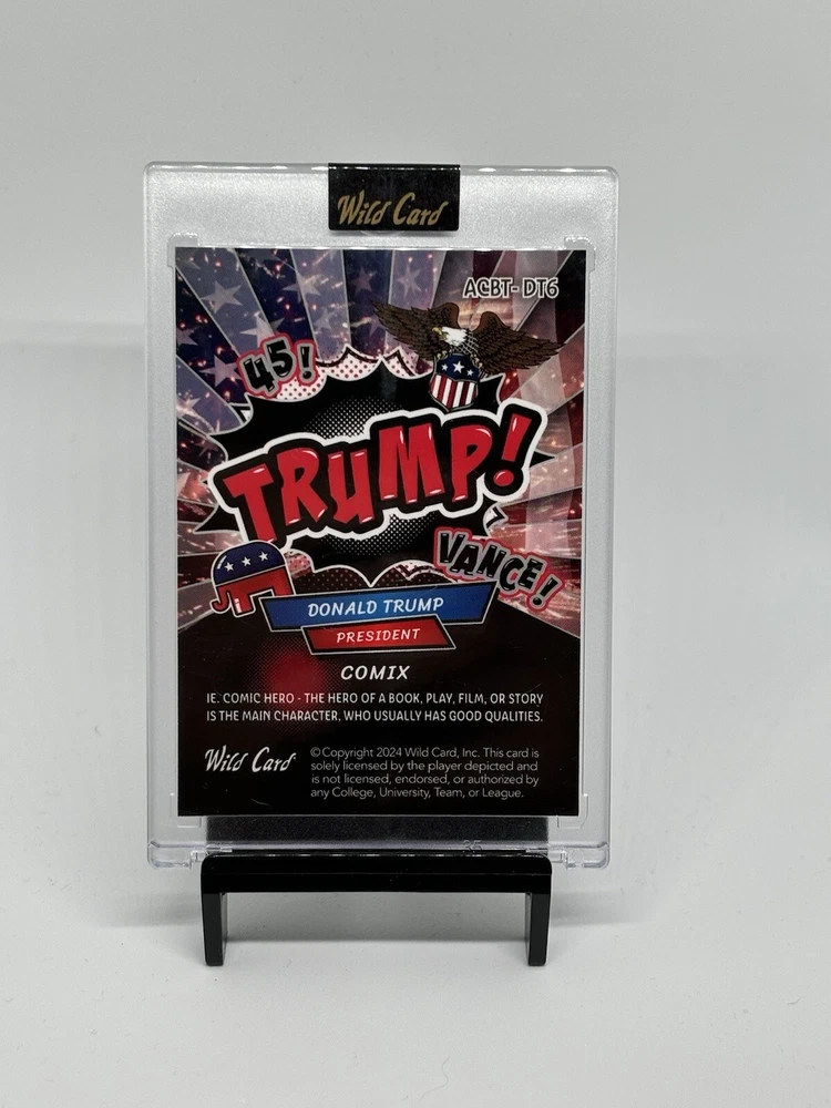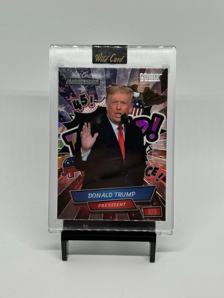 This 2024 Wild Card Trump trading card is a must-have for any collector. With a limited print run of 3/3, this card features a red, white, and blue prizm parallel/variety and hologram. The card is part of the Non-Sport Trading Card category and is an original, not a licensed reprint. The card showcases the US President Donald Trump and is part of the Wild Card, US Presidents franchise. It is a 1st edition, insert, and comes with a serial number. The card is not autographed but is a unique collectors edition with features like SP, Eagle, Not Auto, and America. This trading card is perfect for those interested in Political and History genres.