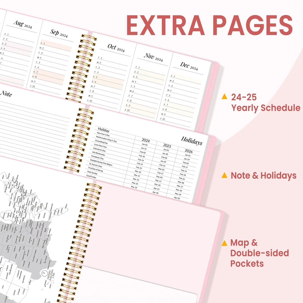 2024-2025 Academic Planner, Annecy Weekly & Monthly Planner from Jul. 2024 – Jun. 2025, 8.5"x11" School Year Daily Planner with Monthly Tab, Waterproof PVC Cover, Spiral Bound, Pocket, Bookmark, Pink Elevate your organization and productivity with the Annecy 2024-2025 Weekly and Monthly Planner. This spiral-bound planner is designed to meet all your planning needs for 2024-2025 and beyond. Whether you're a student, professional, or simply someone who values staying organized, this planner has you covered. Plan your days, weeks, and months with ease using the 2024 Weekly and Monthly Planner. It features dedicated sections for daily, weekly, and monthly planning, ensuring you can manage your time effectively. The 6.4*8.3-inch and 8.5 x 11-inch two size provides ample space for jotting down your appointments, to-do lists, and important dates. The stylish design of the Annecy planner adds a touch of elegance to your daily routine, making planning a pleasure. Crafted with high-quality materials, it offers smooth, bleed-resistant pages, so your writing stays clear and legible. The Annecy 2024 -2025 Weekly and Monthly Planner is more than just a planner; it's a tool to help you achieve your goals and dreams in the year ahead. Stay organized, reduce stress, and make every day count. Don't miss the chance to enhance your productivity and style – order your Annecy 24-25 Planner now. It's time to take control of your schedule and start the year on the right note. Make 2024-2025 your most organized and successful year yet. 2024-2025 PLANNER - From July 2024 to June 2025 with 12 months of monthly and weekly pages for easy year-round planning; 2024-2025 weekly and monthly planner includes ONE additional monthly pages (June 2024); Annecy spiral bound 8.5" x 11" Planner is large and easy to use and carry away. MONTHLY OVERVIEW – 2024-2025 monthly planner includes previous and next month reference calendars for a simple past reviewing and future planning; Notes section for important projects; Major holidays listed; Durable coated colorful tabs dividers that are tough and long-lasting, making it easy to find information. Gentle color background hues on the page make instant clarity! WEEKLY OVERVIEW - Two Page spread for each week, from Monday to Sunday offers generous blank writing space; 2024-2025 daily weekly planner includes popular holidays and 3-month reference previews; allowing you to keep track of your appointments, reminders, ideas and to-do lists every day of the week. Vibrant fonts add a visually appealing touch! PREMIUM PAPER - 100GSM Paper Guaranteed Thicker Than Normal! Keeps your planner neat and attractive in your 8.5" x 11" sizes 2024-2025 planner book; Water-resistant plastic cover and practical double-sided back pocket add convenience; Sturdy 2024-2025 agenda planner book withstands frequent transfers, ensuring long-lasting reliability and durability to the academic year. Value for money! MORE FEATURES - Annecy 2024-2025 daily weekly and monthly planner includes Quick Reference | 24-25 Yearly Overview | Contacts | Special Dates | 24-25 Yearly Schedule | Monthly Section | Weekly Section | Note Pages | Holidays | Map | Double-sided Pockets. Keep you organize throughout the year and easy to use! Shipping from the USA All of our products are shipped from the USA, ensuring quick delivery to your destination. Payment We offer the following payment methods: PayPal, credit card, bank transfer, and eBay's secure payment system. Free Shipping & Free Returns Shipping within the USA is FREE. Additionally, any return is absolutely free for you. Risk-Free Purchase You have the option to return an item within 30 days without any justification. We cover the return shipping costs! Fast Shipping We ship immediately upon receipt of payment. Generally, the package is delivered within 2-3 days in the USA. If it takes longer, we will contact you. Quality and Costs Made in Europe, USA, China No customs fees or additional charges Total satisfaction guarantee Invoice with declared VAT available upon request in .pdf format Feedback Your feedback is very important to us. After you pay for your purchase, you will automatically receive positive feedback from us.