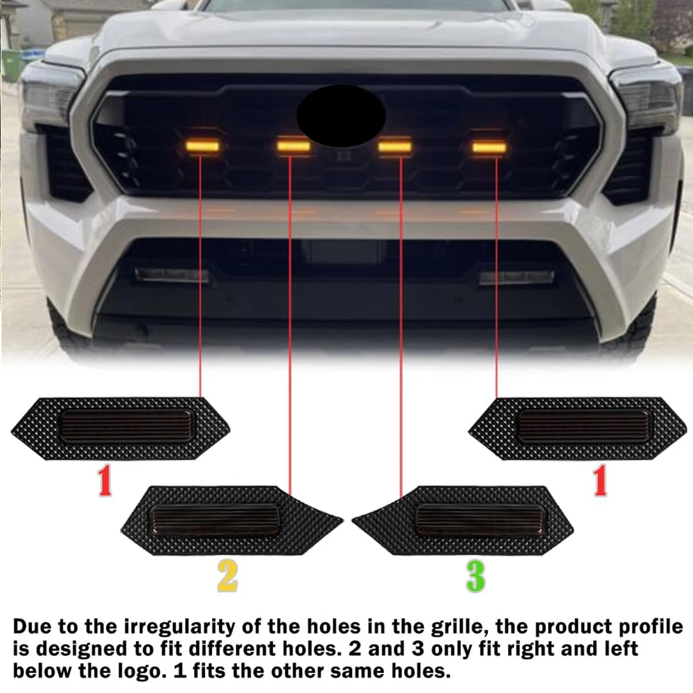 Amber Grille Lights Kit 4X For Tacoma TRD Sport Off-Road Pre Runner 2024,2025 LED 4pcs Front Grille Lights For Toyota Tacoma 2024 TRD Off-Road Crew Cab Pickup Upgrade Grill Lamp Amber Daytime Running Light Accessories (Smoked Lens) Unique Designed: These clear shell amber grille lights are perfectly fit for Tacoma TRD Sport/Off-Road/Pre Runner 2024-2025 grille. High-brightness amber light will give your vehicle a cool overall look and make your car unique. Easy To Recognize: Upgraded waterproof LED front grille lights with bright lights for improved vehicle recognition. Make your vehicle more visible to other drivers in bad weather. Safer Driving. Durable Quality: The LED grille light is made of ABS plastic, which is scratch-resistant, waterproof and corrosion- resistant. Each set is equipped with a wiring harness and a fuse adapter, which can provide a longer service life. Fast Installation: Simply insert the light into the corresponding hole in the grille and connect the wiring harness. Please follow the steps for installation. Package Include: 4 Pcs led grille lights, 1 Set 4 in 1 wiring harness, 1 fuse. Features: 1.Function as: Daytime running light 2.brand new direct replacement as shown in the picture 3.Orange/Smoked housing LED Front grille light 4.Package comes with 4pcs grille light, produces stronger and more focused light beam 5.Installation: Just insert the light into a mesh hole. 6.Volage: 12V (DC) We accept Paypal and majoy credit cards payment When you place an order, please choose a shipping method and pay for the order including the shipping fee within 48 hours. And please make sure your current address correct after your payment within 1-2 days! About Shipping 1. Receiving time = Processing time + Shipping time 2. Processing Time: Around 1-3 Days 3. Shipping Time: 15-26 Days By Air Mail 3-10 Working Days By Express We do not guarantee delivery time on all international shipments due to differences in customs clearing times in individual countries, which may affect how quickly your product is inspected! Important Notice >Transit Time Is Best Estimated But NOT Guaranteed As Transit Time Varies >Orders may be subject to import taxes, customs duties and fees levied by the destination country.Additional charges for customs clearance must be fulfilled by the recipient; We no control over these charges, nor can we predict what they may be. 100% Customer Satisfaction Is Our Top Priority For Any Reasons You Are Not Satisfied With The Products Within 30 Days Of Purchase, Return Or Exchange Can Be Issued, Customers Are Responsible For The Return Shipping Cost And Subsequent Replacement Shipping Cost For An Exchange Item. Replacement Item Will Be Processed And Shipped Upon Return And Inspection Of The Original Item. Return Items Must Be In Their Original Packaging And Unused Condition, Or They Will Be Rejected And Sent Back To You. Due To The Nature Of The Products We Sell, We Carefully Inspect All Packages Prior To Shipping. All Of Our Products Are Sold As Brand New, All Damaged Products Are Considered Damaged During Transit. If You Received A Damaged Or Broken Item, Please Save All Packaging Material And Paperwork And Contact Us Immediately So We Can Help You With The Damage Claim With The Shipping Carrier. No Claims Will Be Honored After 14 Days Upon Item Receive. Digital Photos Will Be Required For All Cases. All Products Come With A 60 Days Limited Warranty Against Manufacturer’s Defects. No Exchange Will Be Issued On Products That Have Been Damaged In Any Way. Warranty Does Not Applied To Improper Installation, Water / Fire Damage, Modification, Or Any Acts Of Nature . If you have any question or concern, please feel free to contact us via eBay massage directly, we will get back to you as soon as we are available ATTENTION : We do not answer any emails over the weekend Please send message to us.We will reply your message in 24 hours, Our working time: 9:00 AM-22:30 PM (GMT+ 08:00 Beijing) 1:00 AM -14:30 PM (GMT+ 00:00 London) 19:00 PM-08:30 AM (GMT- 06:00 USA/Canada) Why Choose us? 1. A tremendous variety of products-- With over 200,000 items in stock, we are one of the world's largest online stores in automotive aftermarket product sector. You'll have more choices than what you can ever imagine. What's more, we're updating with over 100 new arrivals per month! 2. Affordable prices -- we are offering the latest car parts and accessories for almost 20 years, we're always keeping up with the newest trends, while most importantly, making the prices as low as we can. 3. Free worldwide shipping -- Yep, you won't believe that you'll enjoy free worldwide shipping with us (unless stated otherwise),it's not a joke,but an absolute truth. 4. No-question refund and return-- Anything wrong issuing quality and breakage can be returned or refundable. LED 4pcs Front Grille Lights For Toyota Tacoma 2024 TRD Off-Road Crew Cab Pickup Upgrade Grill Lamp Amber Daytime Running Light Accessories (Smoked Lens) Unique Designed: These clear shell amber grille lights are perfectly fit for Tacoma TRD Sport/Off-Road/Pre Runner 2024-2025 grille. High-brightness amber light will give your vehicle a cool overall look and make your car unique. Easy To Recognize: Upgraded waterproof LED front grille lights with bright lights for improved vehicle recognition. Make your vehicle more visible to other drivers in bad weather. Safer Driving. Durable Quality: The LED grille light is made of ABS plastic, which is scratch-resistant, waterproof and corrosion- resistant. Each set is equipped with a wiring harness and a fuse adapter, which can provide a longer service life. Fast Installation: Simply insert the light into the corresponding hole in the grille and connect the wiring harness. Please follow the steps for installation. Package Include: 4 Pcs led grille lights, 1 Set 4 in 1 wiring harness, 1 fuse. Features: 1.Function as: Daytime running light 2.brand new direct replacement as shown in the picture 3.Orange/Sm
