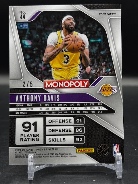 2024-25 Panini Prizm Monopoly NBA #44 Anthony Davis Black Gold 2/5 Lakers
