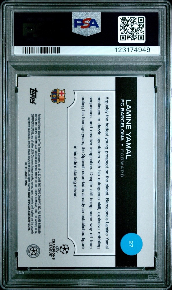 2024-25 TOPPS CHROME UEFA CLUB COMPETITIONS #27 LAMINE YAMAL NIGHT PSA 10 POP 2.