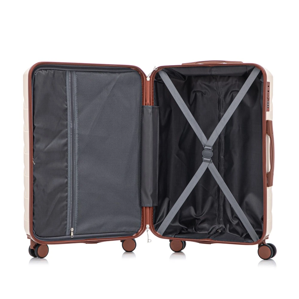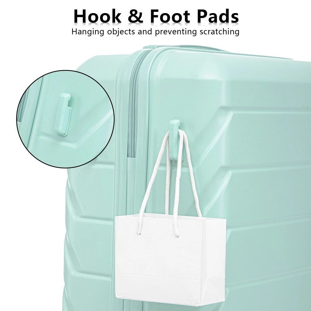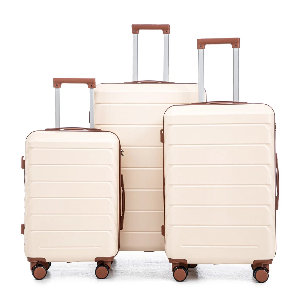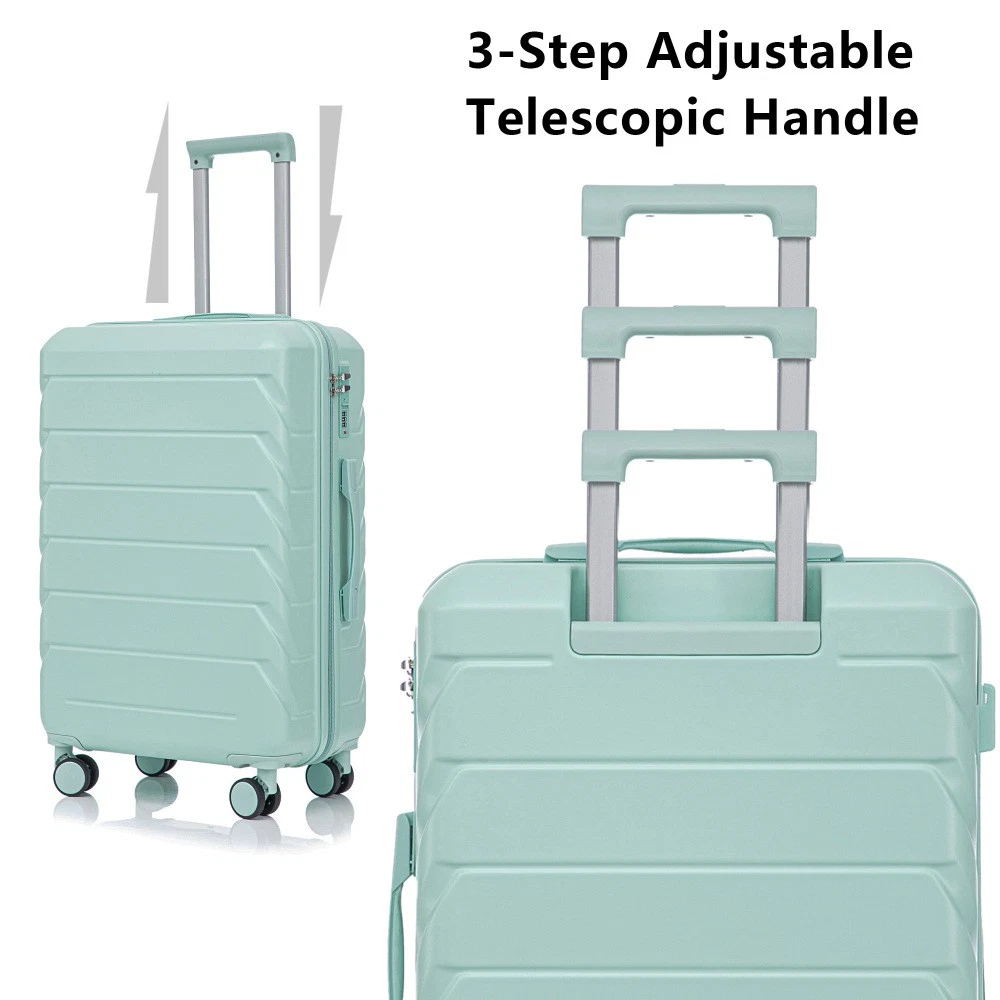 Durable & Waterproof:Our family suitcase set features sturdy watertight ABS external, which is easy to clean and long-term use. It can carry a large weight while having four swivel wheels that can move effortlessly in any direction. Full-Capacity Design Inside Suitcase: Large storage space and fully lined interior with zippered compartment for this hard side luggage sets to keep your items well organized. Low profile top and side handle provide for ease in handling. Retractable Handle:The ergonomically designed push-button 3-step adjustable telescopic handle makes opening and closing a breeze. What's more, it fits any size hand and reduces stress when climbing stairs. Modern Appearance:The stylish and smooth stripe design of the rolling luggage makes it more resistant to pressure and wear and brings a good mood to your journey. It includes four molded side feet, they allow the luggage to remain upright even when standing on its side. Retractable Handle The ergonomically designed push-button 3-step adjustable telescopic handle makes opening and closing a breeze. What's more, it fits any size hand and reduces stress when climbing stairs. Full-Capacity Design Inside Suitcase Large storage space and fully lined interior with zippered compartment for this hard side luggage sets to keep your items well organized. Low profile top and side handle provide for ease in handling. 360° DOUBLE SILENT SPINNER WHEELS 1.Silent wheel, no noise, comfortable and convenient. 2. Double row protection, strong load capacity. 3. 360° smooth and arbitrary rotation, light and convenient. Anti-scratch ABS Hard Shell Enhanced thickening Anti-scratch ABS material build; strong resistance to stress; nontoxic, odour-free, impressive resistant to low and high temperature, an innovation material in hard luggage industry. Large capacity 1.Large space, luxurious interior. 2.The fixed buckle prevents the clothes from shifting, is convenient and practical. 3.There are multiple layers of space, the clothes are layered, clean and easy to take, saving space.