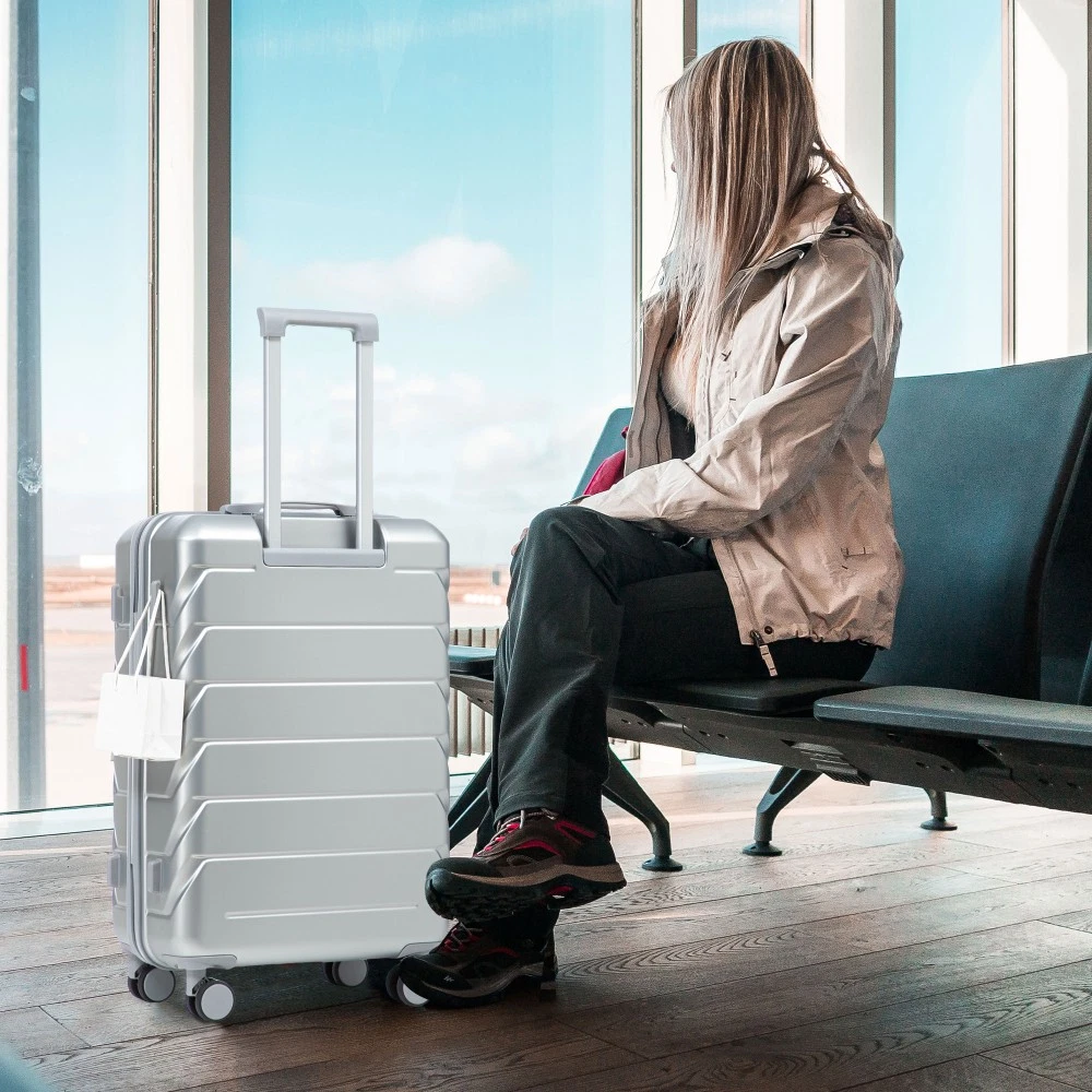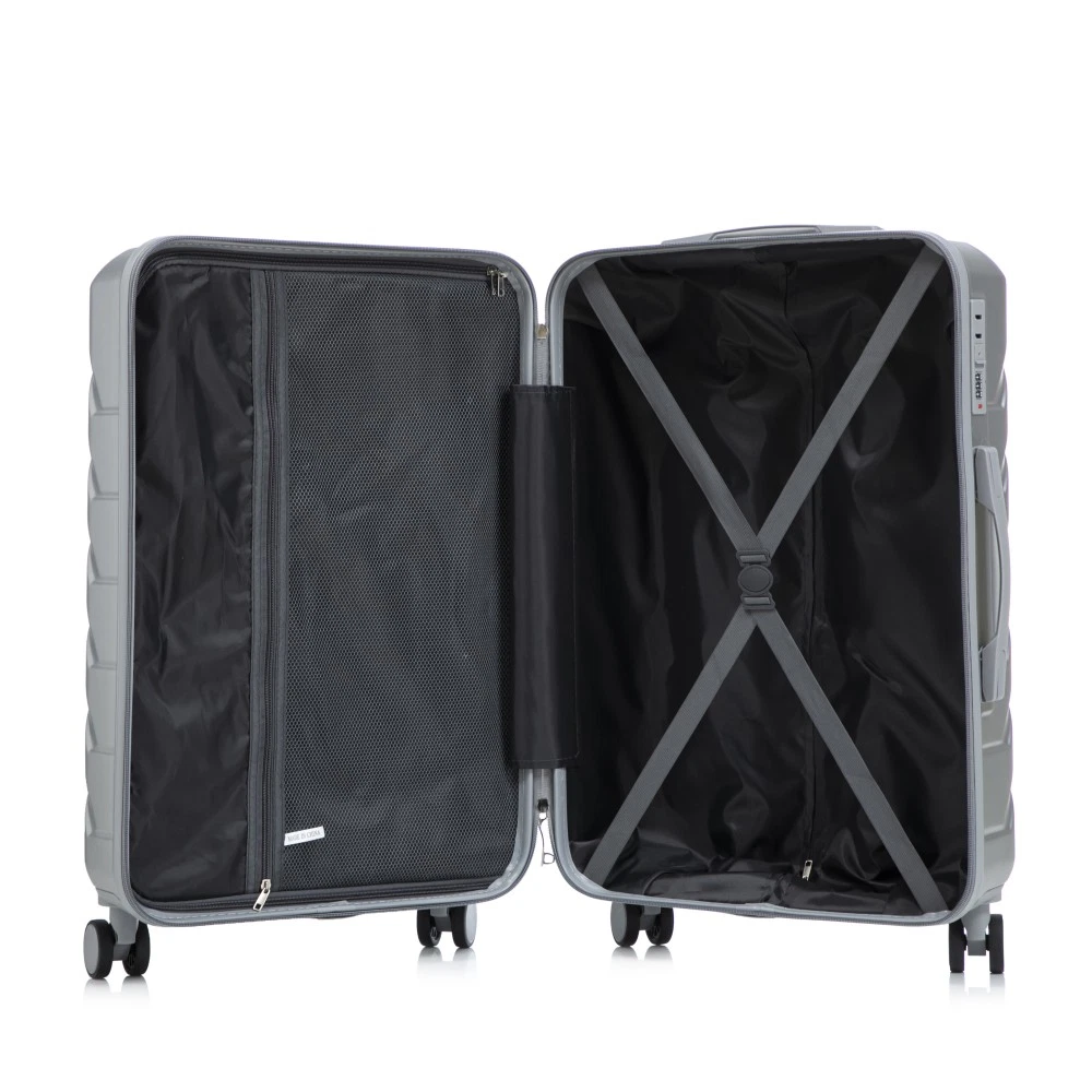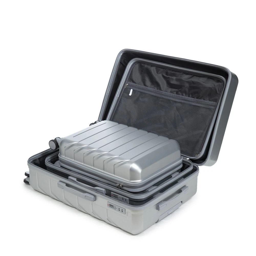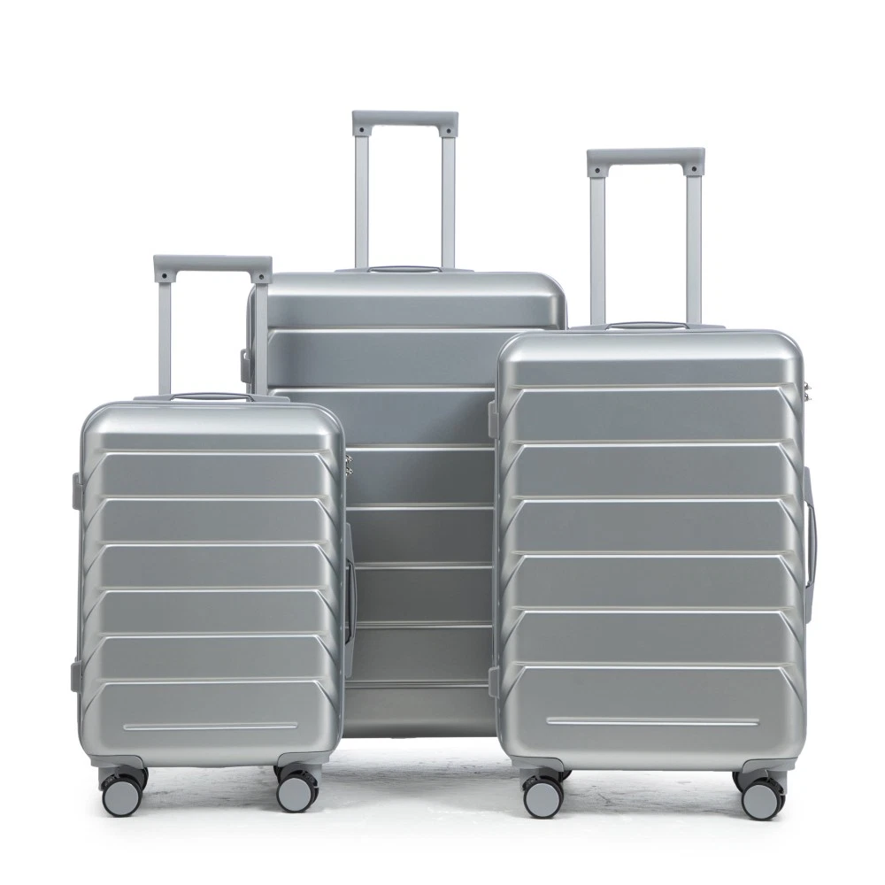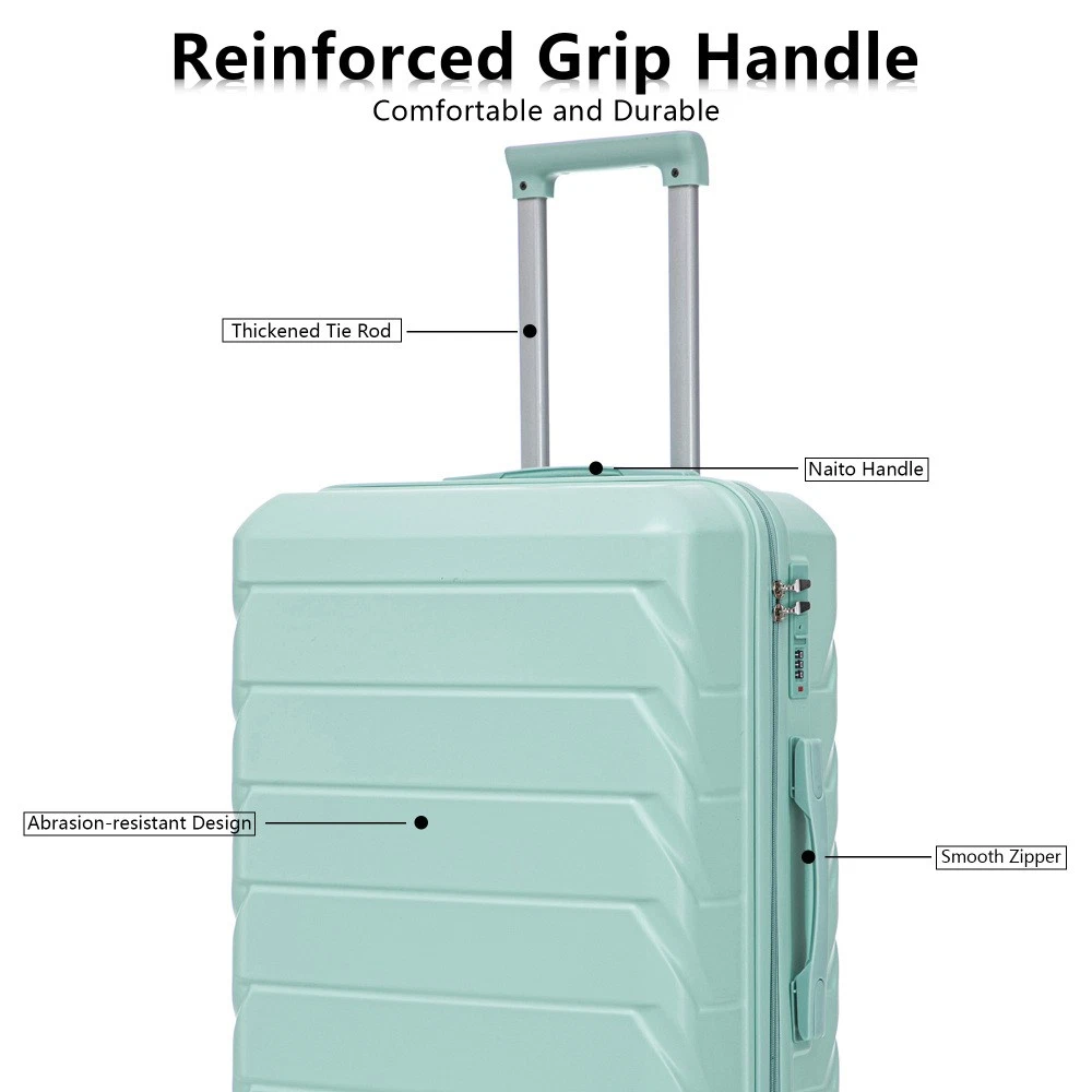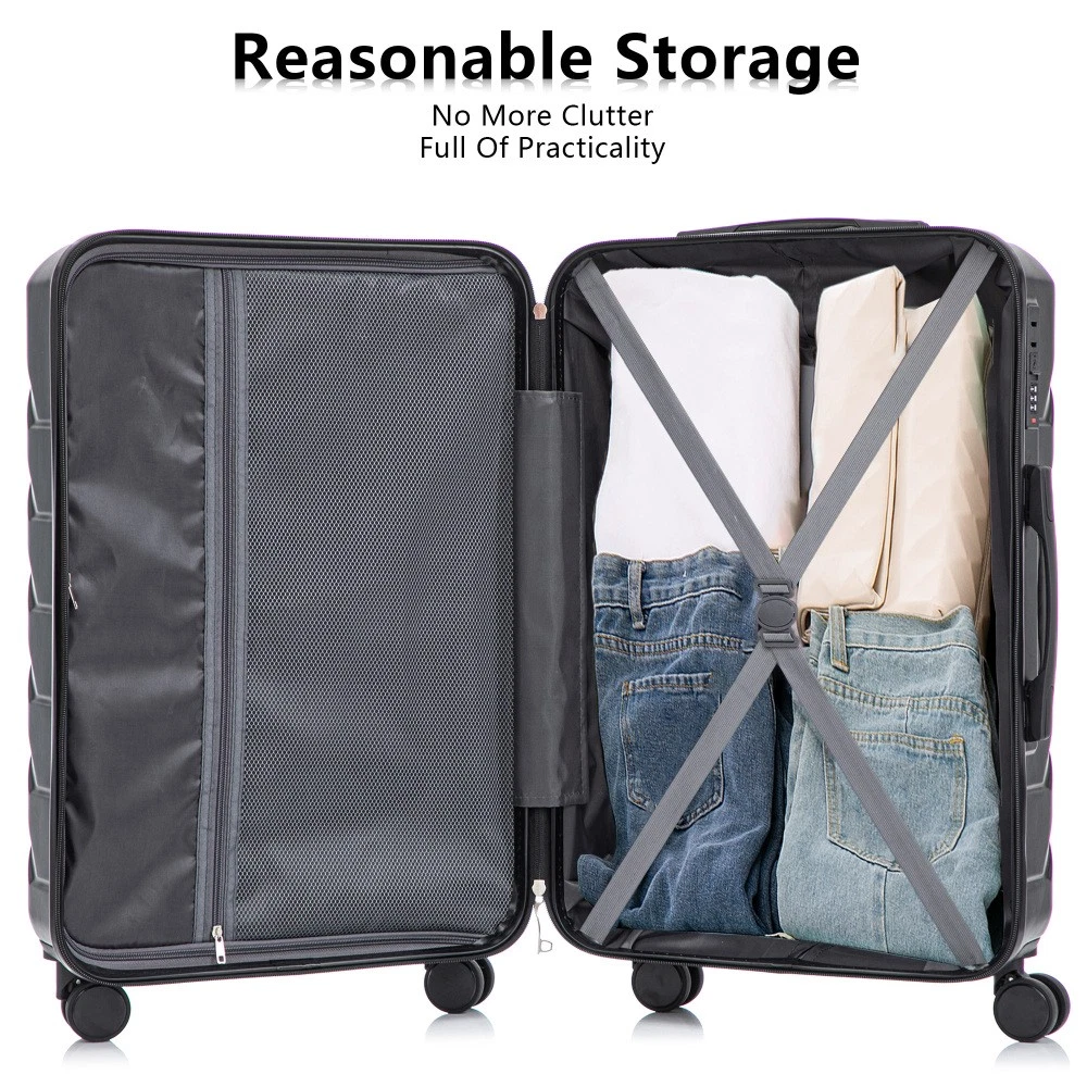 Durable & Waterproof:Our family suitcase set features sturdy watertight ABS external, which is easy to clean and long-term use. It can carry a large weight while having four swivel wheels that can move effortlessly in any direction. Full-Capacity Design Inside Suitcase: Large storage space and fully lined interior with zippered compartment for this hard side luggage sets to keep your items well organized. Low profile top and side handle provide for ease in handling. Retractable Handle:The ergonomically designed push-button 3-step adjustable telescopic handle makes opening and closing a breeze. What's more, it fits any size hand and reduces stress when climbing stairs. Modern Appearance:The stylish and smooth stripe design of the rolling luggage makes it more resistant to pressure and wear and brings a good mood to your journey. It includes four molded side feet, they allow the luggage to remain upright even when standing on its side. Retractable Handle The ergonomically designed push-button 3-step adjustable telescopic handle makes opening and closing a breeze. What's more, it fits any size hand and reduces stress when climbing stairs. Full-Capacity Design Inside Suitcase Large storage space and fully lined interior with zippered compartment for this hard side luggage sets to keep your items well organized. Low profile top and side handle provide for ease in handling. 360° DOUBLE SILENT SPINNER WHEELS 1.Silent wheel, no noise, comfortable and convenient. 2. Double row protection, strong load capacity. 3. 360° smooth and arbitrary rotation, light and convenient. Anti-scratch ABS Hard Shell Enhanced thickening Anti-scratch ABS material build; strong resistance to stress; nontoxic, odour-free, impressive resistant to low and high temperature, an innovation material in hard luggage industry. Large capacity 1.Large space, luxurious interior. 2.The fixed buckle prevents the clothes from shifting, is convenient and practical. 3.There are multiple layers of space, the clothes are layered, clean and easy to take, saving space.