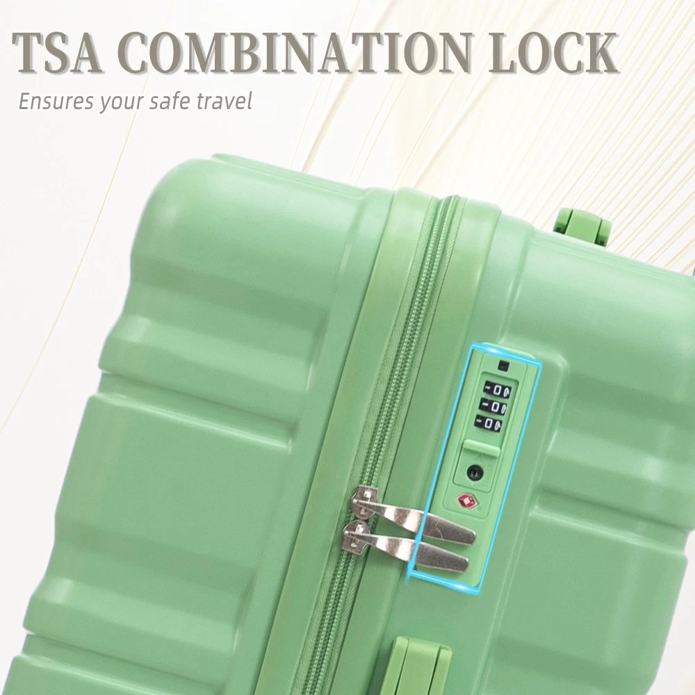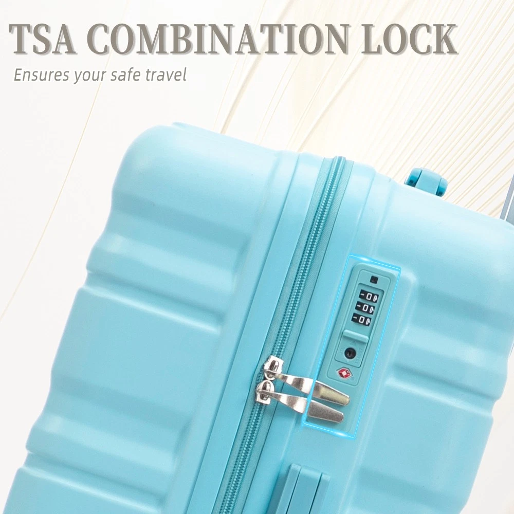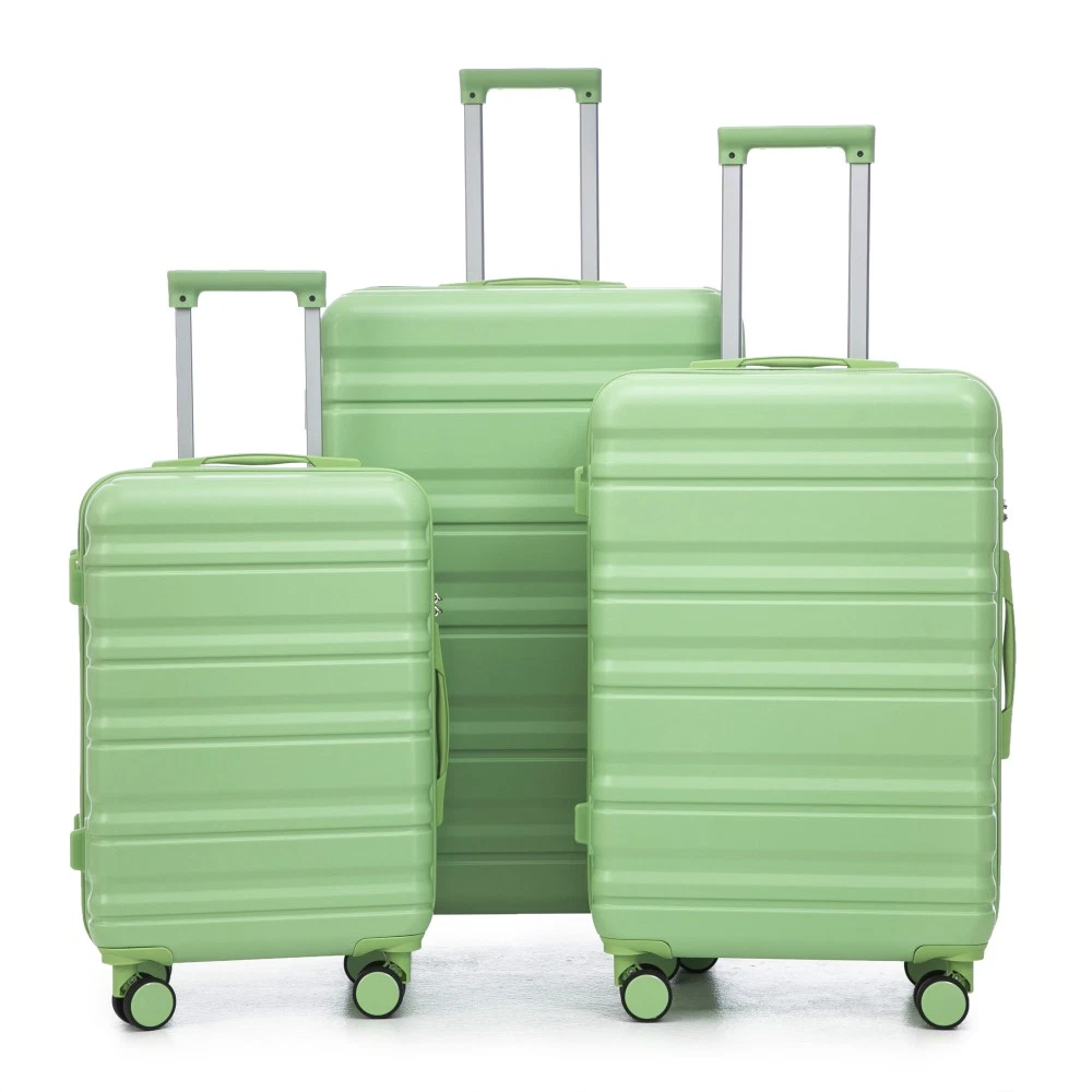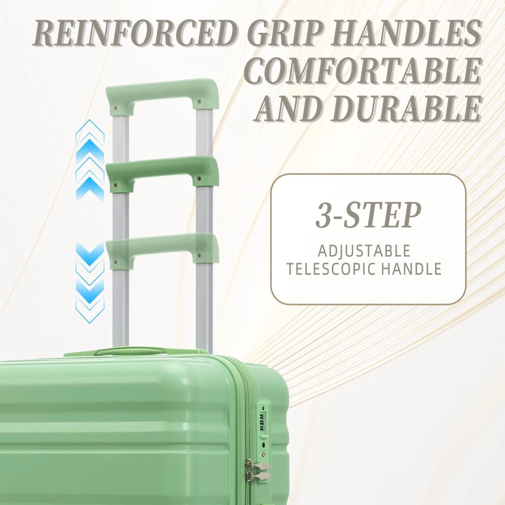 Durable & Waterproof:Our family suitcase set features sturdy watertight ABS external, which is easy to clean and long-term use. It can carry a large weight while having four swivel wheels that can move effortlessly in any direction. Full-Capacity Design Inside Suitcase: Large storage space and fully lined interior with zippered compartment for this hard side luggage sets to keep your items well organized. Low profile top and side handle provide for ease in handling. Retractable Handle:The ergonomically designed push-button 3-step adjustable telescopic handle makes opening and closing a breeze. What's more, it fits any size hand and reduces stress when climbing stairs. Modern Appearance:The stylish and smooth vertical stripe design of the rolling luggage makes it more resistant to pressure and wear and brings a good mood to your journey. It includes four molded side feet, they allow the luggage to remain upright even when standing on its side. Retractable Handle The ergonomically designed push-button 3-step adjustable telescopic handle makes opening and closing a breeze. What's more, it fits any size hand and reduces stress when climbing stairs. Full-Capacity Design Inside Suitcase Large storage space and fully lined interior with zippered compartment for this hard side luggage sets to keep your items well organized. Low profile top and side handle provide for ease in handling. 360° DOUBLE SILENT SPINNER WHEELS 1.Silent wheel, no noise, comfortable and convenient. 2. Double row protection, strong load capacity. 3. 360° smooth and arbitrary rotation, light and convenient. Anti-scratch ABS Hard Shell Enhanced thickening Anti-scratch ABS material build; strong resistance to stress; nontoxic, odour-free, impressive resistant to low and high temperature, an innovation material in hard luggage industry. Large capacity 1.Large space, luxurious interior. 2.The fixed buckle prevents the clothes from shifting, is convenient and practical. 3.There are multiple layers of space, the clothes are layered, clean and easy to take, saving space.