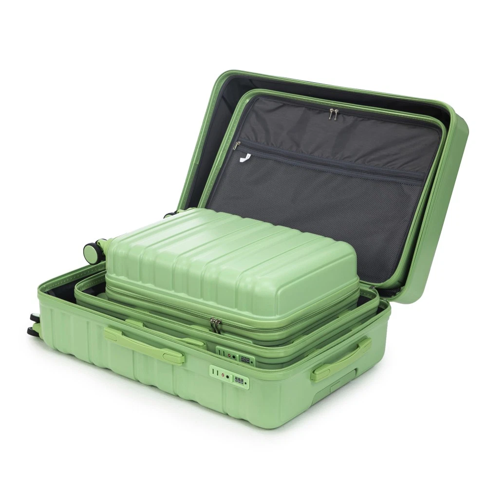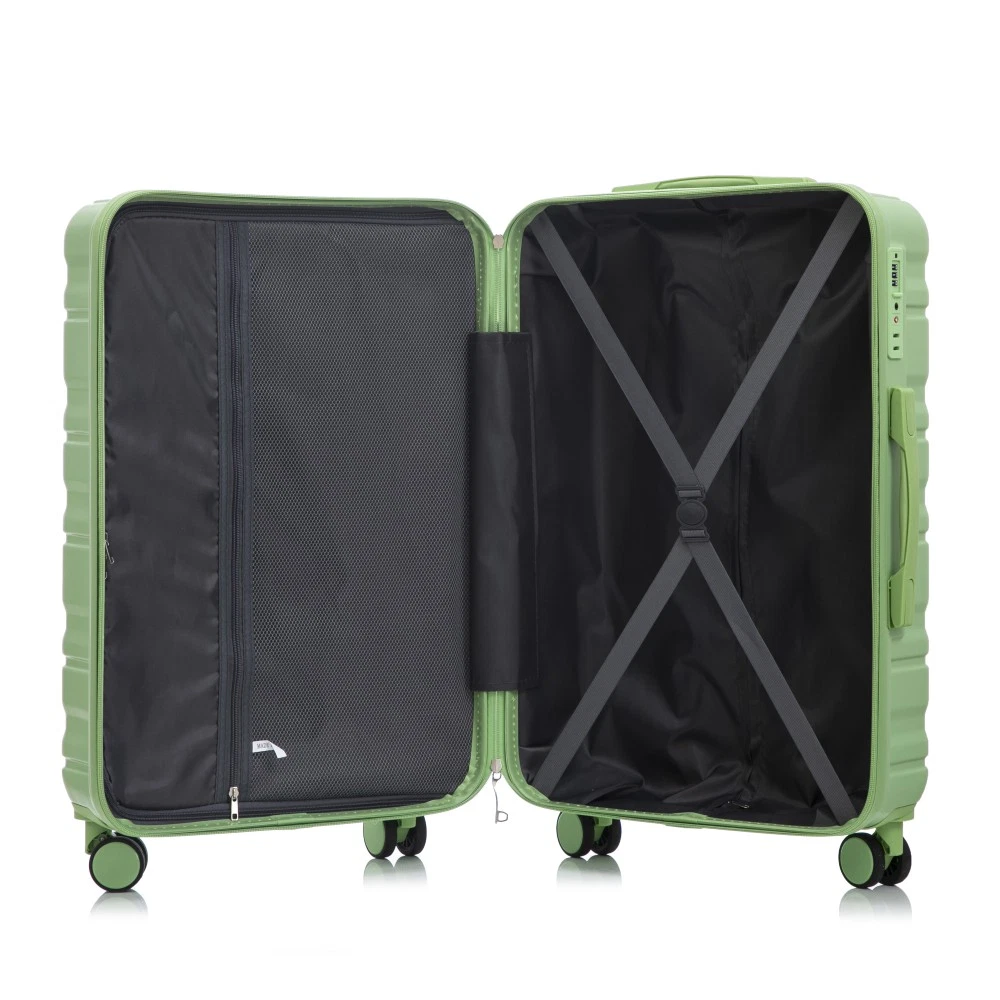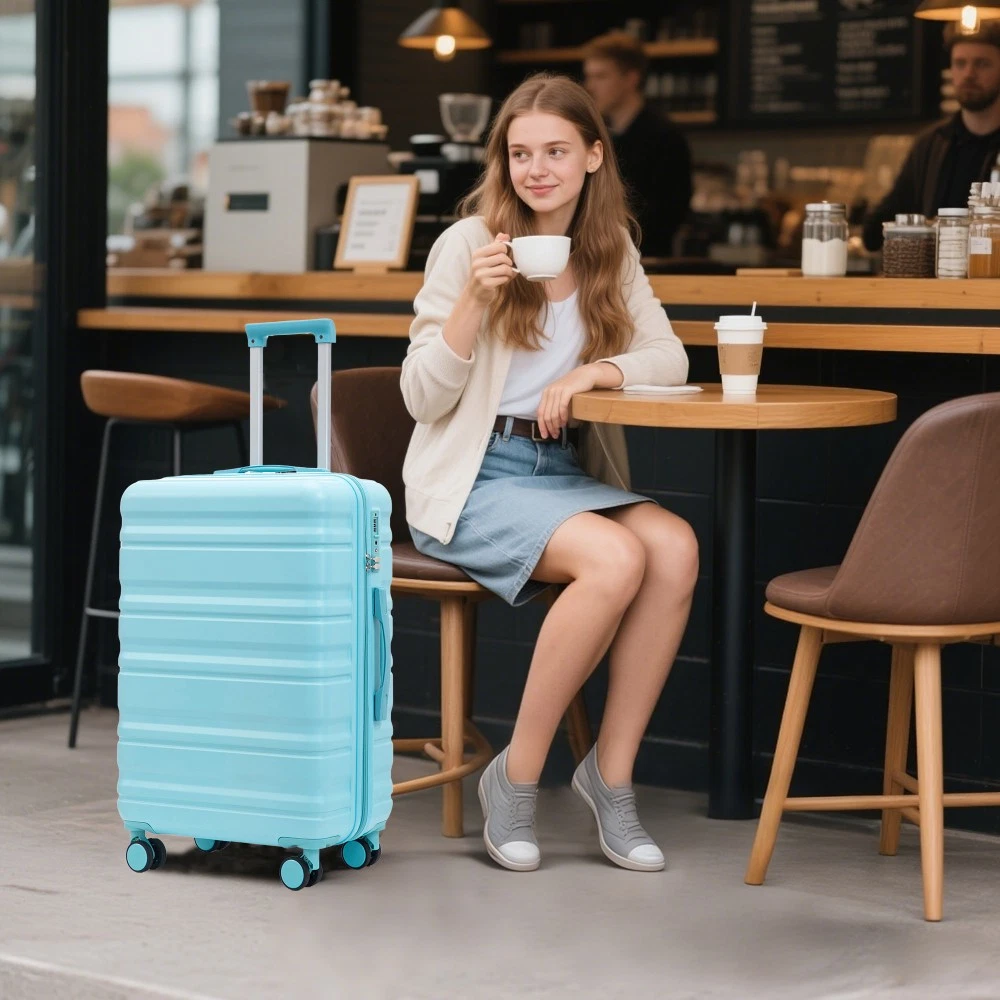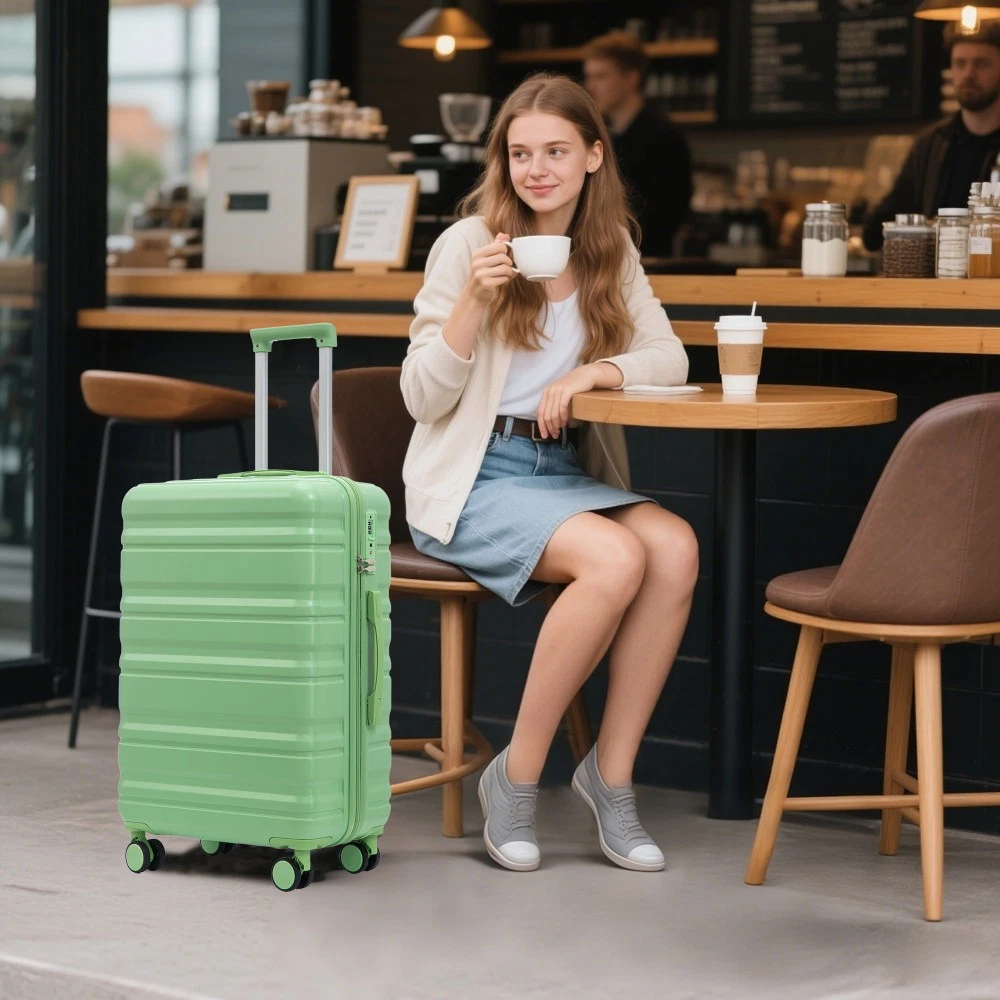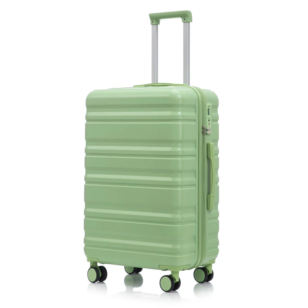 Durable & Waterproof:Our family suitcase set features sturdy watertight ABS external, which is easy to clean and long-term use. It can carry a large weight while having four swivel wheels that can move effortlessly in any direction. Full-Capacity Design Inside Suitcase: Large storage space and fully lined interior with zippered compartment for this hard side luggage sets to keep your items well organized. Low profile top and side handle provide for ease in handling. Retractable Handle:The ergonomically designed push-button 3-step adjustable telescopic handle makes opening and closing a breeze. What's more, it fits any size hand and reduces stress when climbing stairs. Modern Appearance:The stylish and smooth vertical stripe design of the rolling luggage makes it more resistant to pressure and wear and brings a good mood to your journey. It includes four molded side feet, they allow the luggage to remain upright even when standing on its side. Retractable Handle The ergonomically designed push-button 3-step adjustable telescopic handle makes opening and closing a breeze. What's more, it fits any size hand and reduces stress when climbing stairs. Full-Capacity Design Inside Suitcase Large storage space and fully lined interior with zippered compartment for this hard side luggage sets to keep your items well organized. Low profile top and side handle provide for ease in handling. 360° DOUBLE SILENT SPINNER WHEELS 1.Silent wheel, no noise, comfortable and convenient. 2. Double row protection, strong load capacity. 3. 360° smooth and arbitrary rotation, light and convenient. Anti-scratch ABS Hard Shell Enhanced thickening Anti-scratch ABS material build; strong resistance to stress; nontoxic, odour-free, impressive resistant to low and high temperature, an innovation material in hard luggage industry. Large capacity 1.Large space, luxurious interior. 2.The fixed buckle prevents the clothes from shifting, is convenient and practical. 3.There are multiple layers of space, the clothes are layered, clean and easy to take, saving space.
