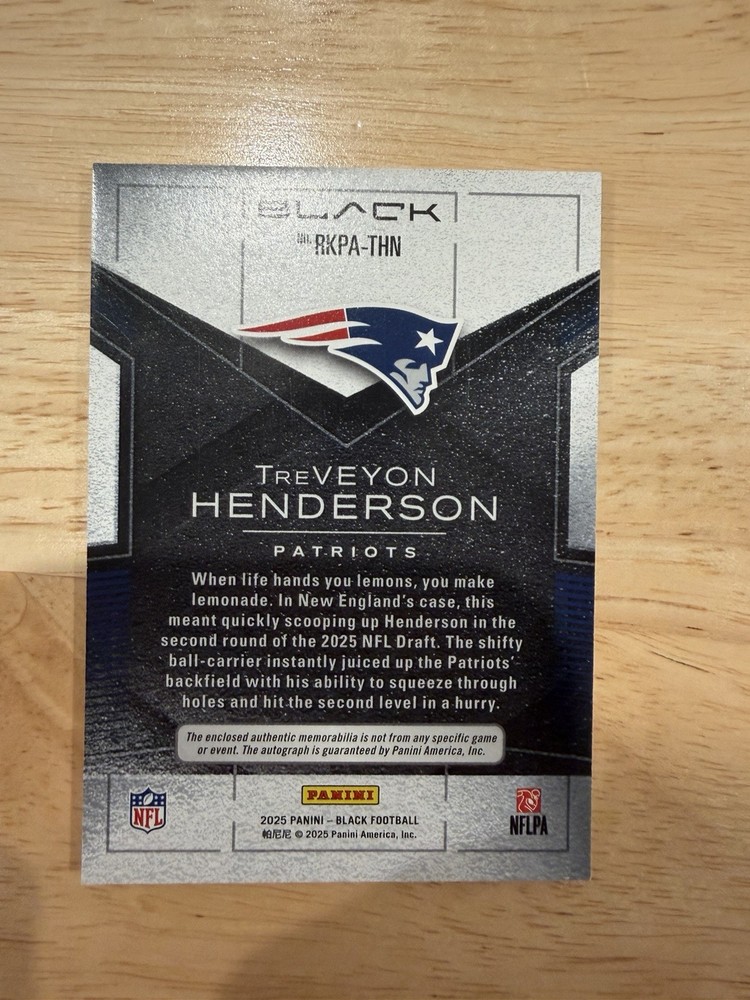 2025 Black TreVeyon Henderson Rookie Patch Auto RPA Nike Swoosh /20 Patriots. Condition is Ungraded. Shipped with USPS Ground Advantage.