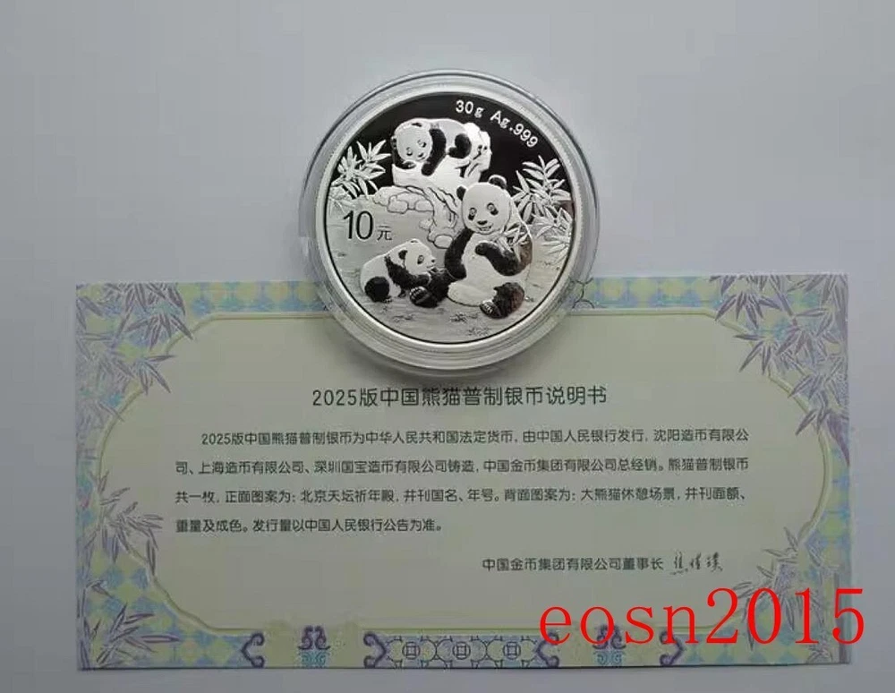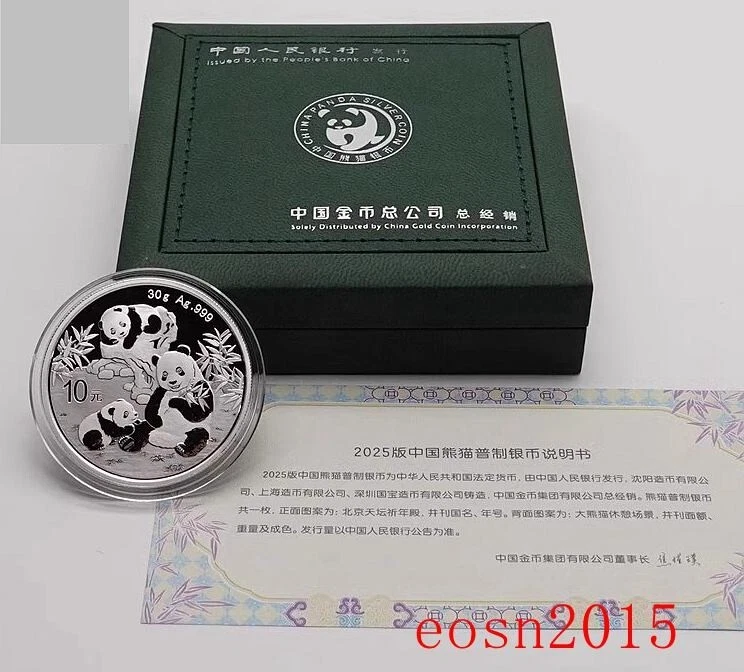 2025 China panda silver coin 10Yuan, China panda Commemorative Coin 30g with Box