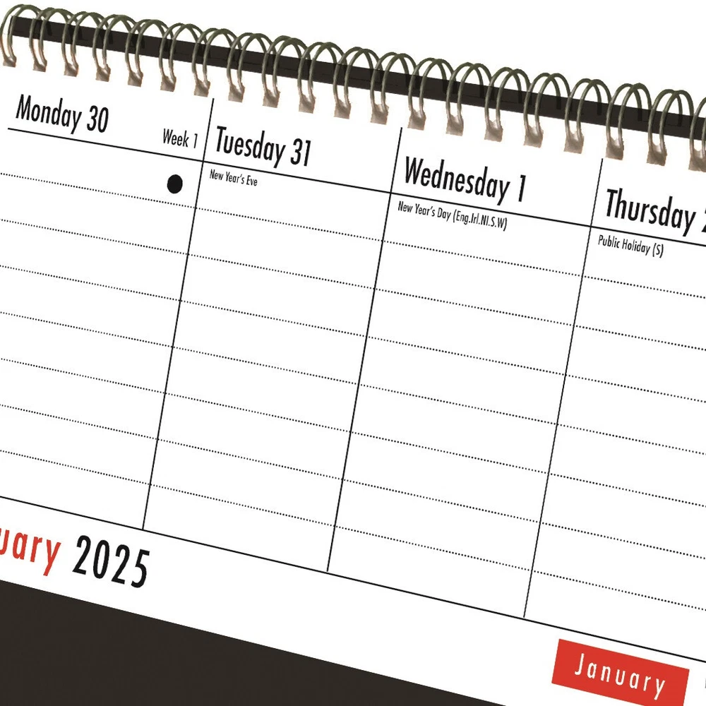 Toggle navigation About Us Visit our Shop Promotions Auctions Promotions Auctions About Us Top Art Categories Art Sets Brushes Canvas Colouring Books Palettes Portfolios Sketch Books Stencils VIEW ALL Top Craft Categories Coloured Card and Paper Fabric Paint Gift Kits Paint by Numbers Pottery Tools Sticker Books VIEW ALL Visit our shop Item Description 2025 WEEK TO VIEW DESKTOP PLANNER This 2025 desktop easy flip calendar is a versatile and practical week-to-view planner designed for use at home, in the office, or at work. This calendar runs from January 2025 to December 2025, providing you with a full year of organised scheduling and planning. The free-standing design of this calendar makes it an excellent choice for desks and shelves. No need for hanging or mounting; simply place it wherever you need it most. Measuring approximately 29cm x 11cm, each page offers ample space for writing and can be fully flipped over thanks to its twin wiro binding design. Our week-to-view layout ensures a clear and structured display. Each weekday is presented in its own column with 8 rows for jotting down your plans and appointments. Saturdays and Sundays share a column, with 2 rows on Saturday and 3 rows for Sunday. Stay on top of your schedule with ease. This desktop flip calendar goes beyond the basics. In addition to the week-to-view format, it includes essential features such as UK Bank Holidays, notable dates, and Moon phase data. At the bottom of each page, you'll find a handy overview of the current month, providing you with a quick reference point. But that's not all! The calendar includes space for Personal Data, 2024, 2025, and 2026 Calendars, Conversion Tables, Moon Phases, Sunrise and Sunset times, Birthdays, 2025 Appointments Calendar, 2025 Religious Dates, UK and Republic of Ireland Holidays, International Information, Notes Pages, and even a section at the back for Contact Information, allowing you to conveniently store important phone numbers, addresses, and emails. Stay organised with a comprehensive 2025 week-to-view desktop flip calendar Conveniently place it on desks and shelves with its free-standing design Each page offers ample space for writing, with dedicated rows for weekdays and weekends Stay informed with UK Bank Holidays, notable dates, Moon phase data, and monthly overviews Easily flip through pages with the twin wiro binding and compact size of approximately 29cm x 11cm Enjoy additional sections for personal data, calendars, conversion tables, holidays, notes, and contact information More 2025 calendars & diaries available from our Ebay shop Reasons to buy from Quickdraw Established in retail for over 20 years we take pride in delivering a 5 service as standard. Soon after you buy an item we will process it and ship it as fast as we possibly can. We want you to be happy and to enjoy a problem free shopping experience. Quickdraw operates multiple eBay stores covering everything from Stationery, Home and Office to Toys, Games and Party Supplies as well as Outdoor essentials. Click here for more information. Returns Information We offer 30 day returns. Please note you must contact us prior to returning an item to acquire a returns number. The quickest and easiest way to contact us is via an eBay message Upon cleared payment we will despatch your order as soon as possible. Normally this is within 1 working day. Your order should then be delivered within the time frame relevant to the service your chose. If you have not yet received your item, please allow the maximum expected delivery time before contacting us. Newsletter Want to hear about special promos and offers? Simply follow this link and subscribe! We will only send you messages/emails relevant to eBay and only if you are subscribed. Postcode Surcharges Please note that for large/heavy items there may be a surcharge for some post codes in Highlands, Islands or Isles. Sign Up For Newsletter Follow Us on eBay Copyright © Quickdraw Supplies But that's not all! The calendar includes space for Personal Data, 2024, 2025, and 2026 Calendars, Conversion Tables, Moon Phases, Sunrise and Sunset times, Birthdays, 2025 Appointments Calendar, 2025 Religious Dates, UK and Republic of Ireland Holidays, International Information, Notes Pages, and even a section at the back for Contact Information, allowing you to conveniently store important phone numbers, addresses, and emails. Established in retail for over 20 years we take pride in delivering a 5 service as standard. Soon after you buy an item we will process it and ship it as fast as we possibly can. We want you to be happy and to enjoy a problem free shopping experience. Quickdraw operates multiple eBay stores covering everything from Stationery, Home and Office to Toys, Games and P