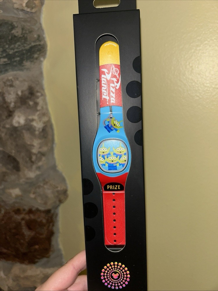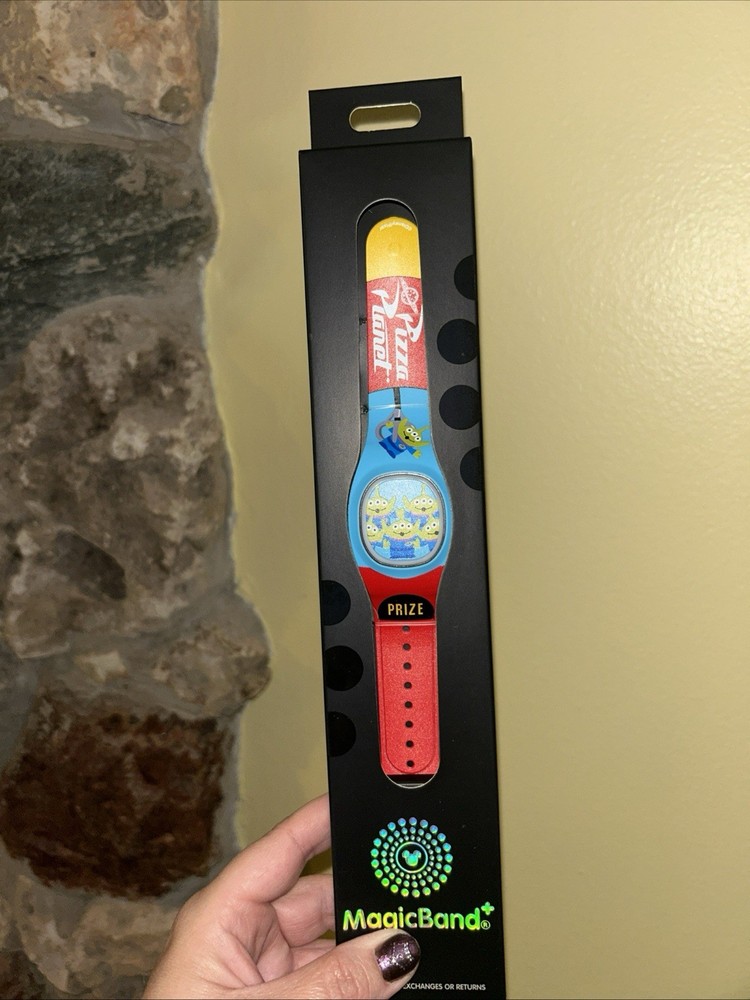 The product is a new 2025 Disney Parks Toy Story Alien Claw Pizza Planet MagicBand Plus that is unlinked. This collectible item features characters from the Toy Story franchise, specifically the Alien character from the Pizza Planet scene. Made by Disney, this contemporary piece is a souvenir from Disney Parks and is part of the Disney franchise. It is a unique and sought-after item for collectors of Disney memorabilia.