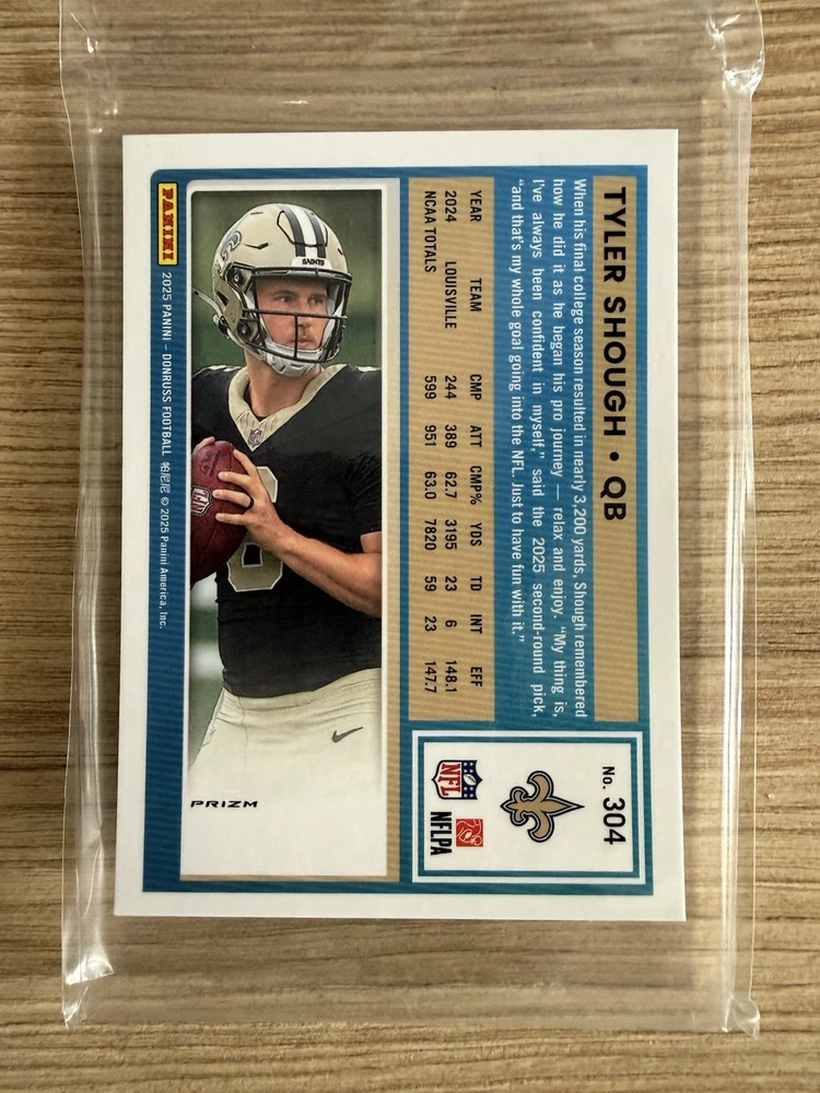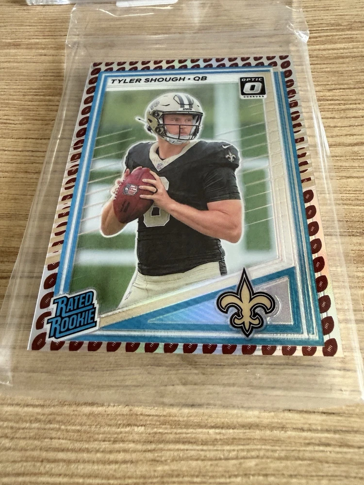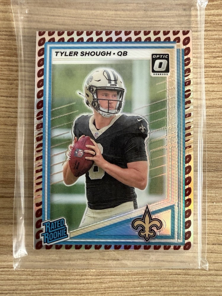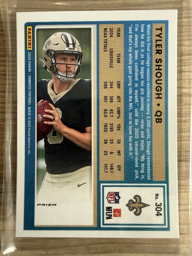 The 2025 Donruss Optic Tyler Shough Rated Rookie Football Emoji RC SSP #304 is a highly sought-after sports trading card featuring the talented football player Tyler Shough. This card belongs to the Optic set with a short print print run, making it a rare find for collectors. Produced by Donruss, this English-language card showcases a unique Football Emoji design and is a must-have for fans of the National Collegiate Athletic Association (NCAA) and National Football League (NFL). With its limited availability and rookie designation, this card is sure to be a valuable addition to any sports trading card collection.