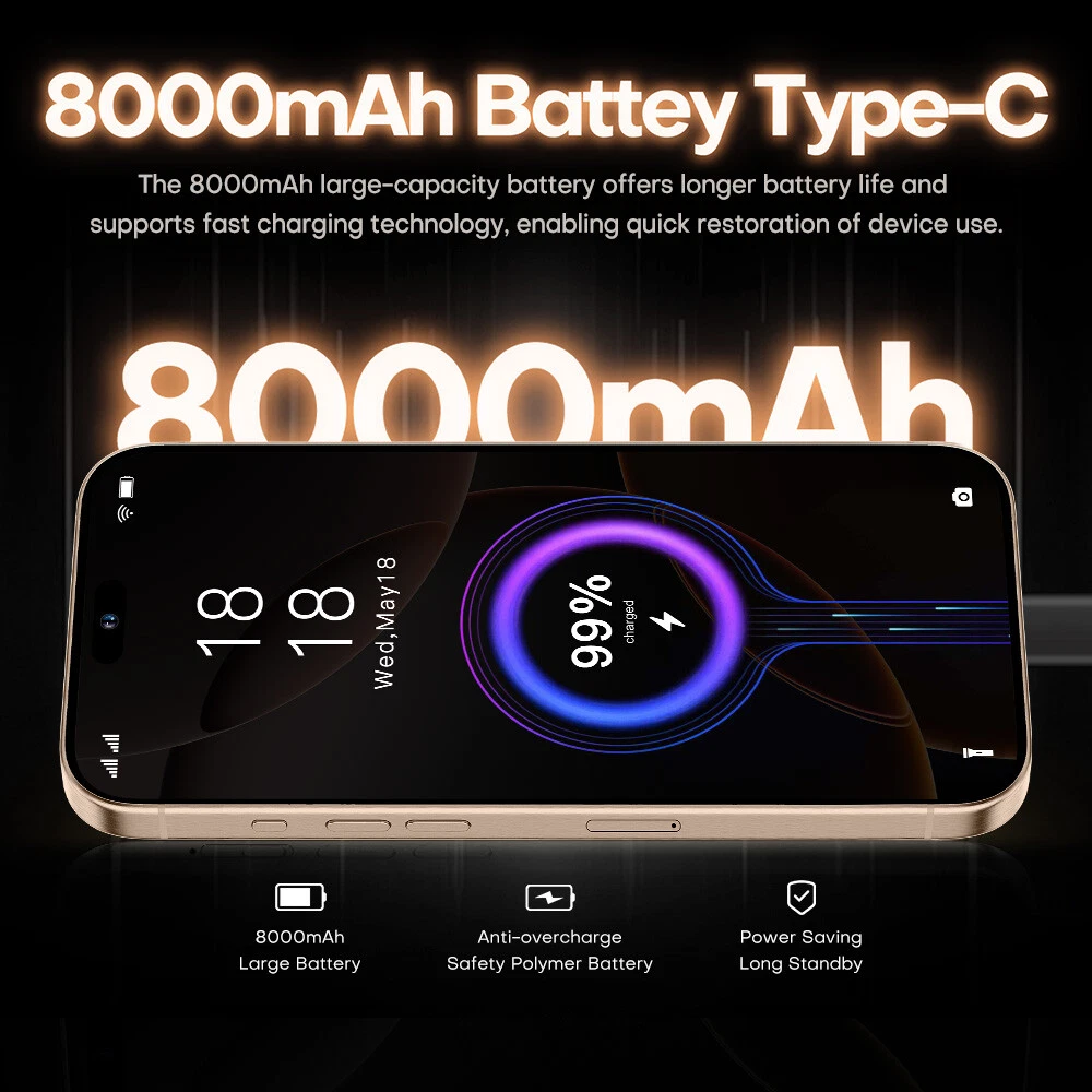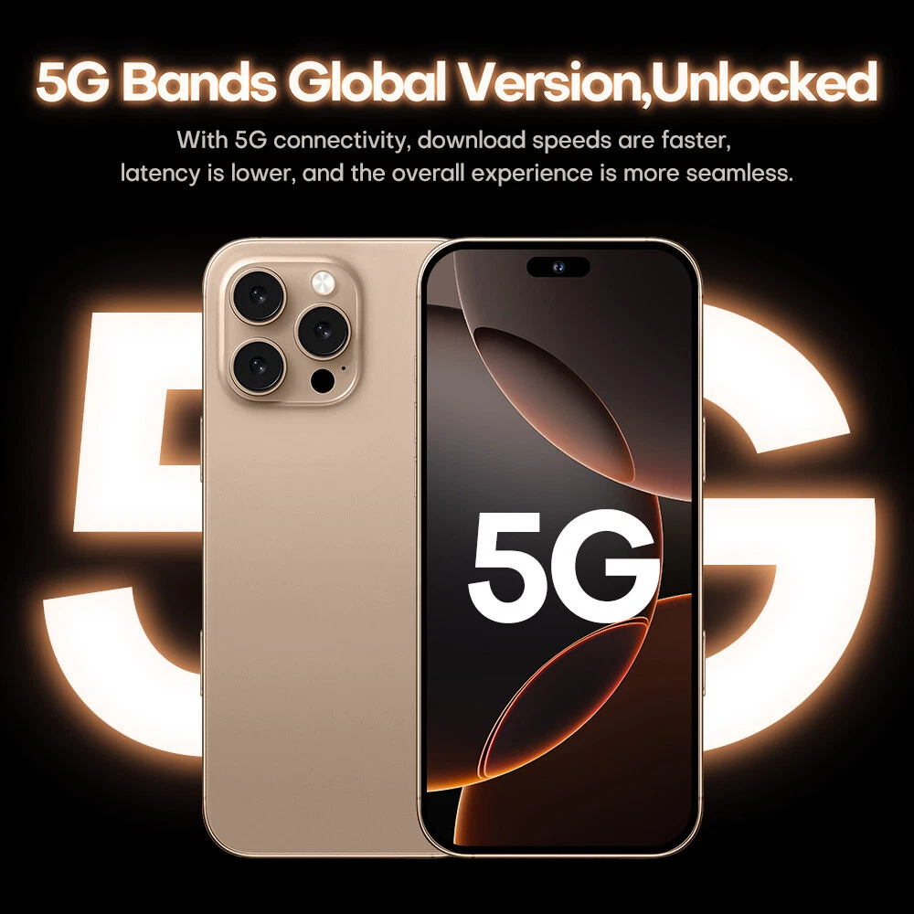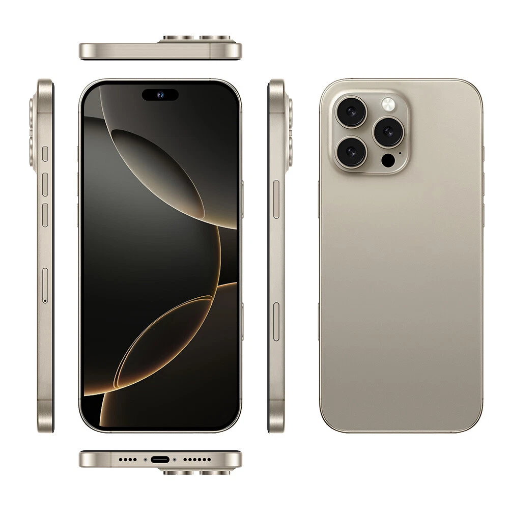 Factory Unlocked i16 Pro Max 7.3 inch 4G 5G Android Smartphone Dual SIM Cell Phones Factory direct sales, better quality but lower price is our target and mission! Note: There may be tariffs, and buyers should pay local customs duties 1:1 Size ,this phone can fit iphone 16 pro max cases! Features : - 7.3inch FHD Display The i16proMax delivers the viewing experience you always wanted, With a massive 93% screen-to-body ratio on a 7.3 "inch screen . - 50 MP Front Camera Clear and Stylish Selfie The i16proMax world-leading 50 MP front camera turns your every self i e into a work of art e xperience greater brightness, color vibrancy, clarity and dynamic range. E ven in the dimmest light, w henever you need it , your i16proMax is right there with you, capturing every moment with crystal-clear precision, Turn your selfies into masterpieces and shine in every photo . - 108MP Rear HD camera The i16proMax features a 108 MP camera combination. The main camera sports a large f/1.8 aperture and 1.28um pixels, This strong combination boosts photo-sensitivity in backlight or low light, Just point and shoot, and i16proMax will make sure your pictures remain clear and bright . - Face Access The i16proMax also supports facial recognition u pon activation, i16proMax scans your facial features and unlocks instantaneously a ccessing your phone has never been so easy, or so fun . - Powerful Performance The Snapdragon 8 gen2 mobile platform with 10mm process technology makes young people who love the young and other popular games. The game is on and lower . - Android 1 4 .0 The new interactive design makes the operation simple and simple, the use of the mobile phone is so simple and straightforward, everything is handy . - Dual SIM card supports TF card Dual card dual standby, card slot does not distinguish between the main and the deputy, supporting the worlds 50 major communication carrier networks - Camera Button Camera Control gives you an easier way to quickly access camera tools. A high-precision force sensor with haptic feedback emulates the feel of a DSLR camera shutter. Recognizes precise interactions like clicks and slides. Specification: 1.Model No.: i16proMax 2.Platform : Snapdragon 8 gen3 , Deca Core (Latest 10 Core) 3.Standby: Dual sim dual standby 4.Screen: 7.3 HD+ Full Display 1440*3200 5.Speaker: 1511 Box Speaker 6.Frequency: GSM850/900/1800/1900MHz, 3G:WCDMA850/ 1700/ 1900/2100MHz *4G: TDD(B38\B40\B41 ), FDD (B1\2\3\4\5\7\8\20\28A\28B) * 5G 7.Vibration: Support 8.Colors: Desert Titanium ,Black Titanium,White Titanium,Natural Titanium 9.Memory: 16 GB RAM+ 1T B ROM 10.Multi Media: MP3/MP4/3GP/FM Radio/Bluetooth 11.Camera: 50 MP+ 108 MP 12.Multi Function: Full screen, Face recognition, Dual SIM, 2.4&5G Wi-Fi , GPS, Gravity Sensor, Alarm ,Calendar ,Calculator ,Audio recorder ,Video recorder, WAP/MMS/GPR S , Image viewer,E-Book,World clock,Tasks card , rear flash 13.Languages: Muti-language support 14.Others: Android OS 1 4 .0 System 15.Battery: 80 00 mA h Lithium-ion battery 16.Ultra unibody 17.TypeC input Package Included: 1 x Smartphone, 1 x Charger Adapter, 1 x Headphones, 1 x User Manual , 1 x phone case , 1 x Protection film Attention: *In terms of memory and capacity, the actual available capacity will be reduced and different due to many factors: because the operating system occupies part of the memory (RAM), the actual available space is less than the marked memory capacity; due to the installation of the operating system and pre-installed programs occupy part of the flash memory (ROM), and the actual available storage space is less than the indicated flash memory capacity. *The mobile phone support GSM,WCDMA (For example USA operators : T-mobile , AT&T , Straight Talk , Cricket Wireless , Google Project Fi , Lycamobile , MetroPCS , MintMobile), whether to support 4G, 5G depends on the local operator networksupport,does not support the Telecom CDMA network. (For example USA operators : Verizon , Sprint , U.S Cellular , Boost Mobile , FreedomPop , Ting ) , *In terms of charging, data such as speed and duration are all our laboratory data, and the actual situation may vary slightly depending on the version of the test software and the specific test environment. In the end, the actual usage time shall prevail. *When the phone is completely out of power and automatically shuts down, you need to charge your phone for more than 10 minutes to boot. It is recommended to charge when the battery is less than 20% charged. *The screen pictures and product description display pictures provided on this website are all schematic diagrams for reference, and the actual situation shall prevail in kind. *Product pictures, models, data, functions, performance, specifications, user interface and other product information are for reference only. We may improve the above content. For specific information, please refer to the actual product and product manual. remove Unless otherwise specified, the data involved in this website are the results of our internal tests, and the comparisons involved are all compared with our products. *The general mobile phones compared on the page are our own mobile phones. Unless otherwise specified, the product site provid