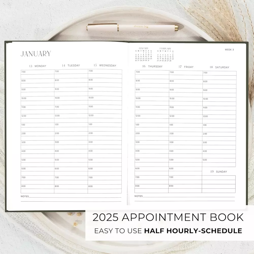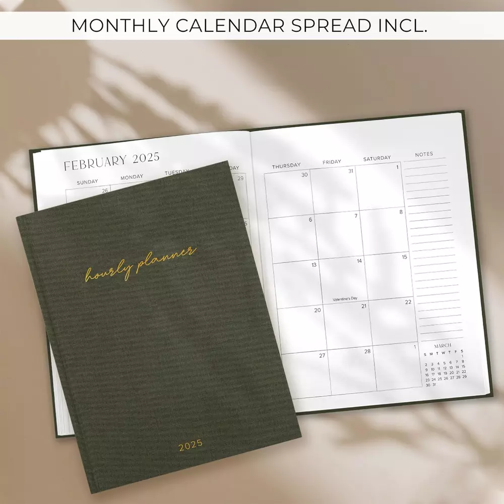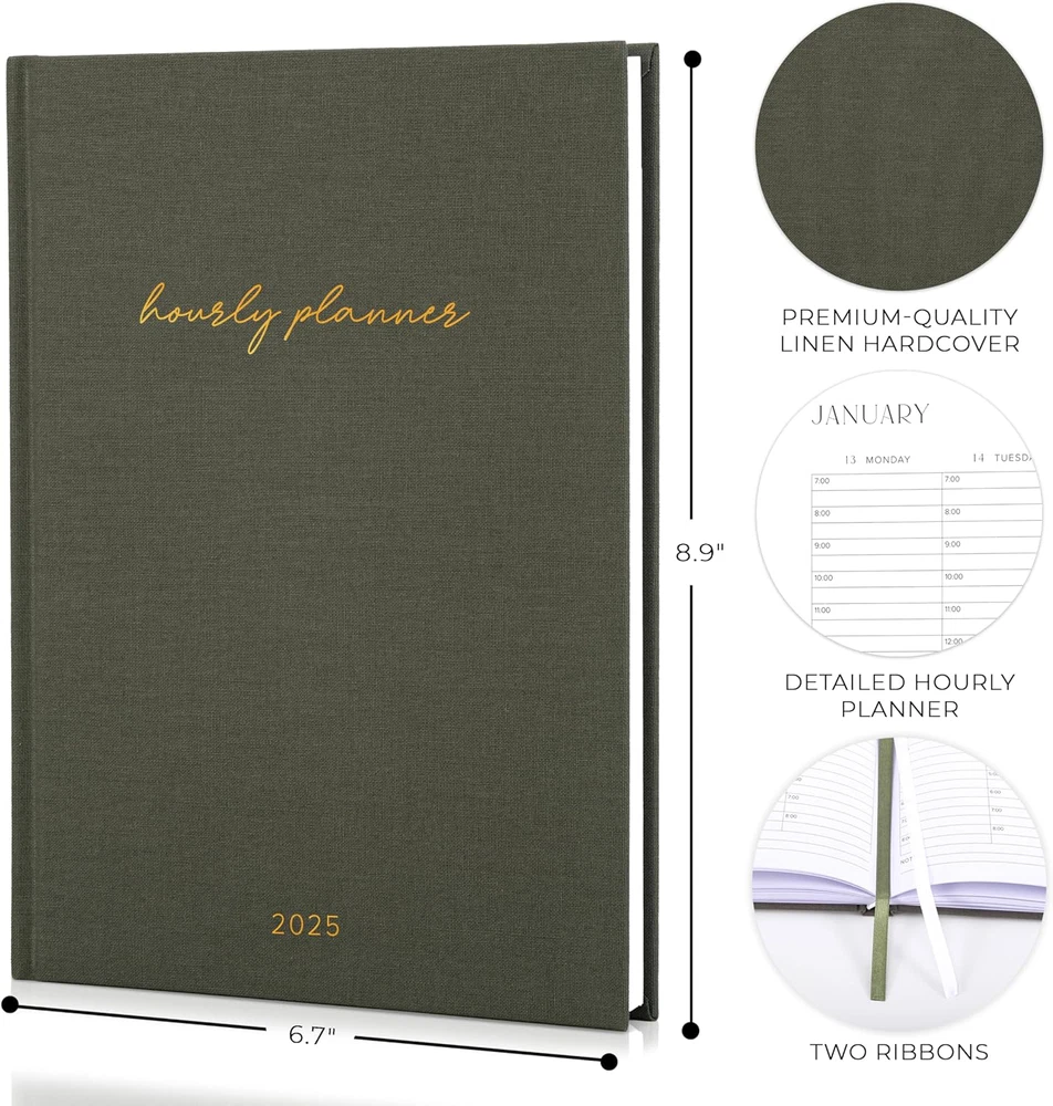 2025 Linen Daily Planner - Hourly Schedule & Weekly Calendar Organizer